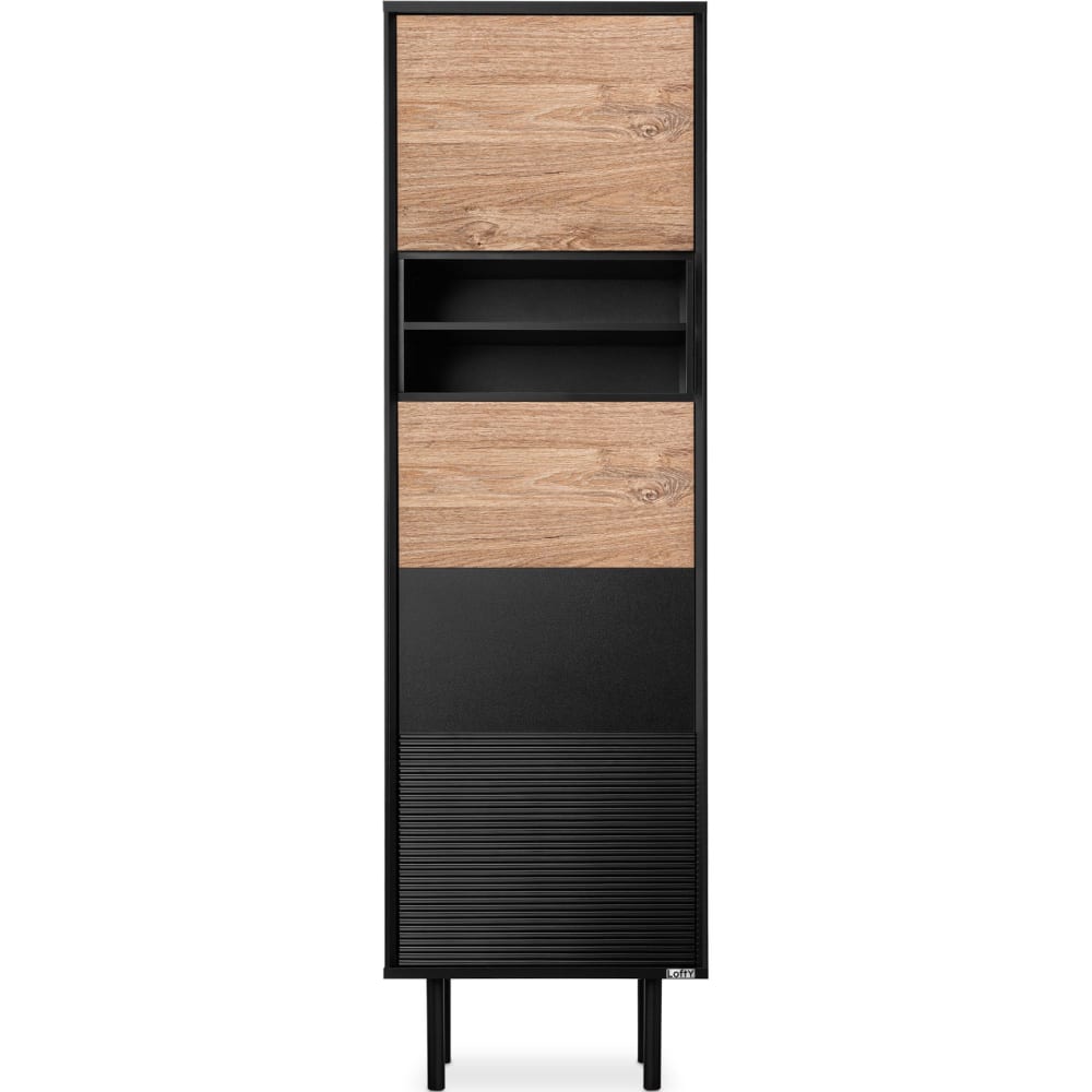 – Produkt entworfen und hergestellt in EU.- Die Möbel haben Vertiefungen und ungleichmäßige Oberflächen, so dass das Massivholz nicht eben ist.- Das Push-to-Open-System verfügt über spezielle Verriegelungen, so dass Sie nur an der richtigen Stelle auf die Tür oder die Schubladen drücken müssen, um sie zu öffnen.- Das Möbel steht auf hohen Beinen aus massivem, lackiertem Holz, die zusätzlich verstellbar sind.- Die Möbel sind aus einer laminierten Platte gefertigt, die keinen Staub anzieht und mit einem Tuch gereinigt werden kann.Die LOFTY-Kollektion ist das Werk angesehener Professoren, die sie so vielseitig und anpassungsfähig wie möglich gestaltet haben. Die Möbel sind mit verschiedenen Arten von Regaleinsätzen ausgestattet, die sich in Form und Farbe unterscheiden. Ebenso wichtig ist die Kombination aus schwarzem Laminat und eichenfarbenem Dekor, die perfekt zusammenpassen. Die Kollektion ist nicht nur für den rohen Industriestil, sondern auch für den wärmeren Loft-Stil geeignet. Der Loft RTV-Schrank in Eiche natur/schwarz ist in erster Linie ein Möbelstück für Nutzer, die Wert auf Details und hochwertige Verarbeitung legen. Er bietet Platz für viele praktische Dinge wie Dokumente, Fernsehgeräte oder andere wichtige Dinge. Die gesamte Kollektion besteht aus drei Arten von Kommoden, zwei Arten von Bücherregalen, Vitrinen und RTV-Schränken.A) Das Push-to-Open-Schließsystem verfügt über spezielle Verriegelungen, so dass Sie einfach an der entsprechenden Stelle auf die Tür oder die Schubladen drücken, um sie zu öffnen. B) Die Türen sind mit in drei Ebenen verstellbaren Scharnieren versehen. C) Das Möbelstück hat Vertiefungen und ungleichmäßige Oberflächen, so dass das Material nicht eben ist. SKU:12607.38.014