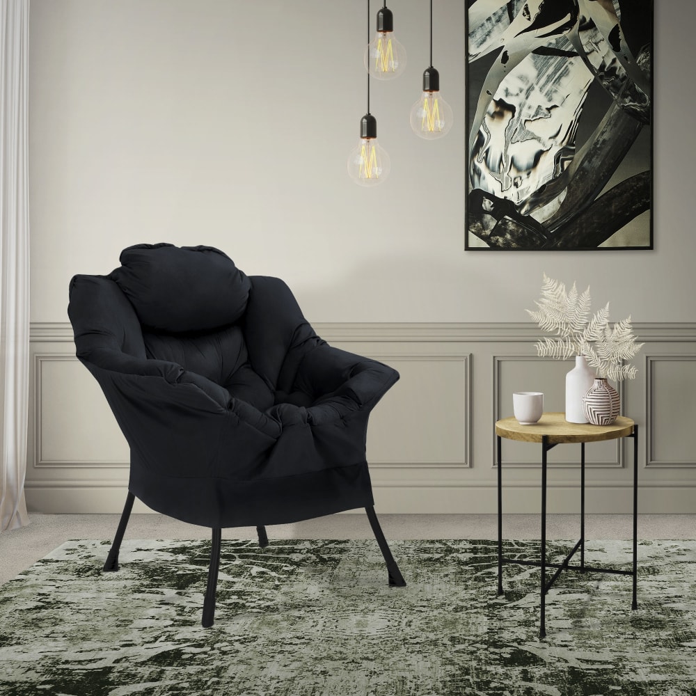 Relaxsessel Schwarz, mit Armlehnen & Seitentasche von ML-Design