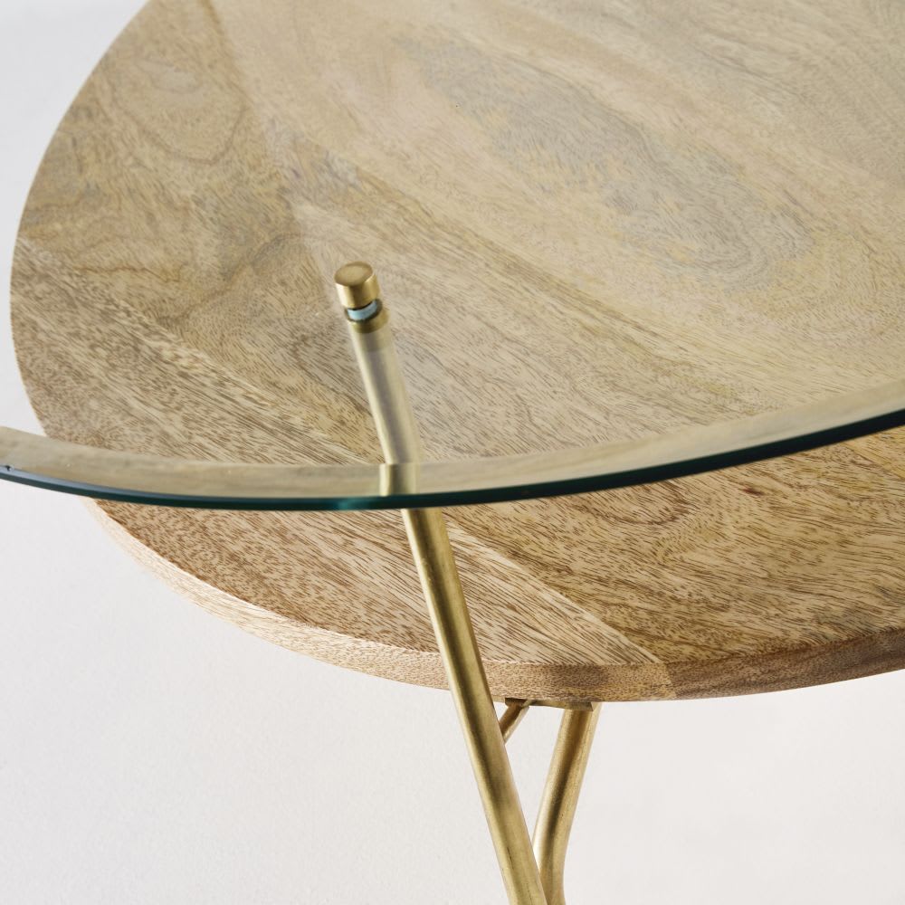 Runder Couchtisch aus Sicherheitsglas und massivem Mangoholz 80 cm von Maisons du Monde