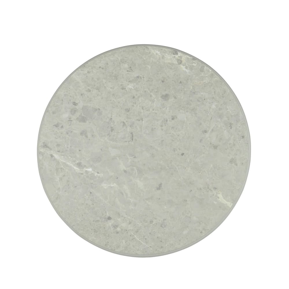 Der Easy Couchtisch in Grau mit einem Durchmesser von 80 cm kombiniert minimalistisches nordisches Design mit einer modernen Marmoroptik. Die FSC®-zertifizierte, melaminbeschichtete Tischplatte sorgt für eine edle, kratzfeste Oberfläche, während der mittige Säulenfuß aus Holz Stabilität und eine stilvolle Optik verleiht.