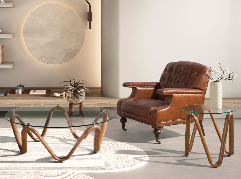 Runder Ecktisch aus gehärtetem Glas und Walnuss von Angel Cerda