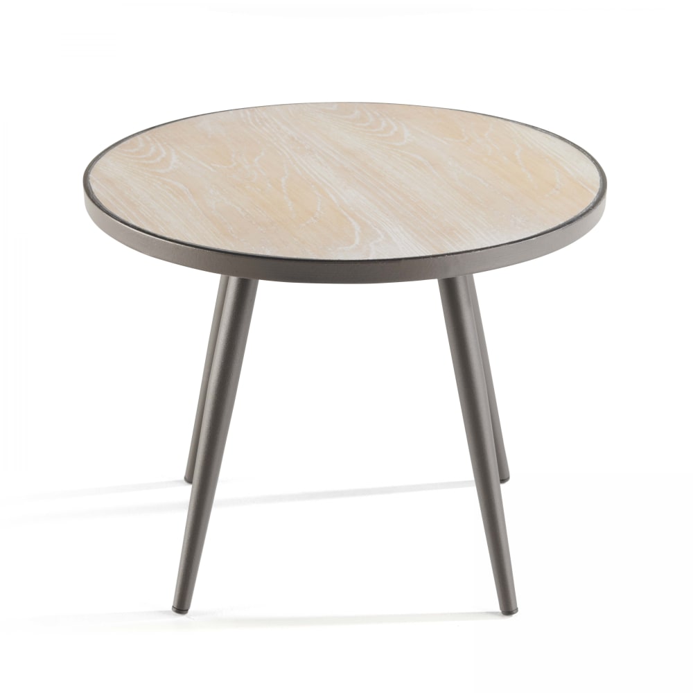 Runder Gartencouchtisch mit Holzimitatplatte Grau von Oviala