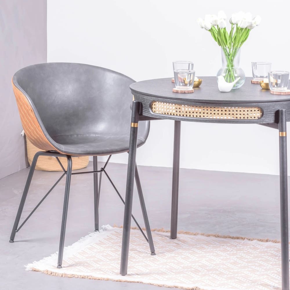 Die Produktpalette von North richtet sich an Retro-Liebhaber. Alle Möbel wurden im Vintage-Stil entworfen, mit Schwarz als Basis, aber immer kombiniert mit natürlichen Rattan-Details. Für die Tischplatte wurde schwarz lackiertes Buchenholz verwendet und die Basis ist aus lackiertem Edelstahl Edelstahl , um mehr Widerstandsfähigkeit zu bieten. Buchenholz zeichnet sich durch seine Festigkeit und Härte aus, wodurch es sehr langlebig ist. Seine hellen Farbtöne und sein hervorragendes Verhalten gegenüber verschiedenen Oberflächen machen es zu einer sehr guten Option für das Möbeldesign. Rattan ist ein Material mit langen und flexiblen Fasern. Seine Fasern können praktisch nicht brechen, weshalb sie für Indoor- und Outdoor-Möbel verwendet werden. Natürlich können wir zwischen natürlichen und synthetischen Materialien wählen, und die Bestimmung der Verwendung unserer Möbel hängt davon ab, ob sie in Innenräumen geeignet sind oder ob synthetische Materialien sich besser für den Außenbereich eignen. Stahl ist ein sehr widerstandsfähiges Material, das starken Stößen und Schlägen standhält, ohne seine Form zu verlieren. Seine Härte führt zu einer größeren Haltbarkeit im Vergleich zu anderen ähnlichen Materialien. Seine lackierte Oberfläche verleiht den Möbeln mehr Ästhetik, ohne jedoch die für das Material so charakteristische Korrosionsbeständigkeit zu verlieren.