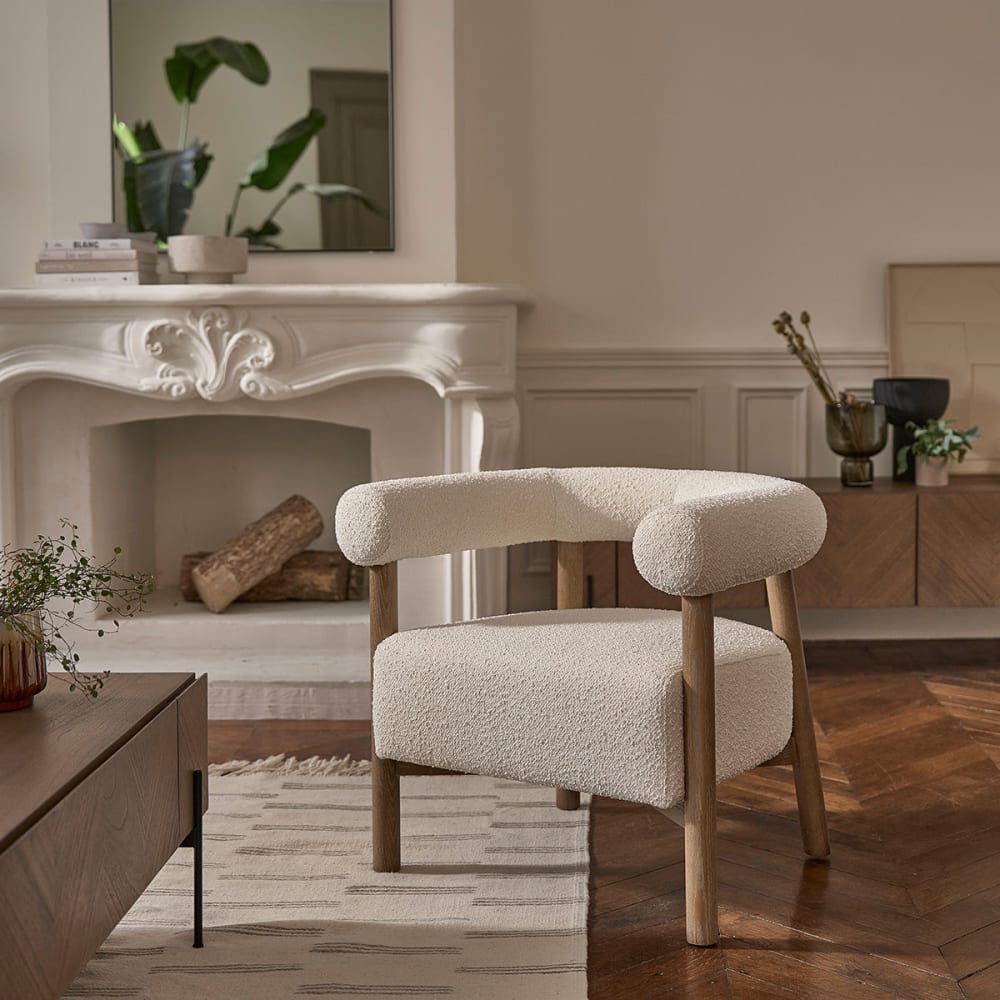 Runder Sessel aus Eichenholz und naturfarbenem Bouclé-Stoff von BERAH GETAH