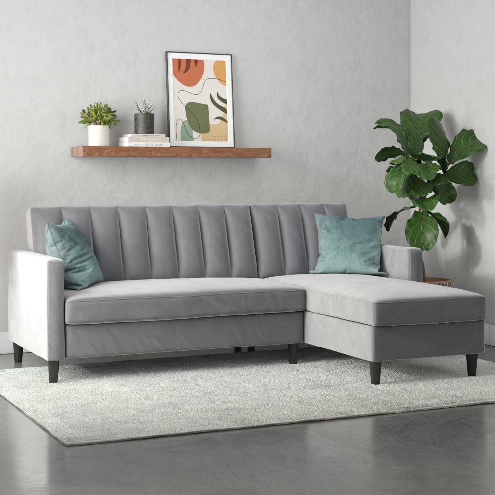 Schlafsofa 3-Sitzer mit Chaiselongue aus Samt, Grau von Dorel Home