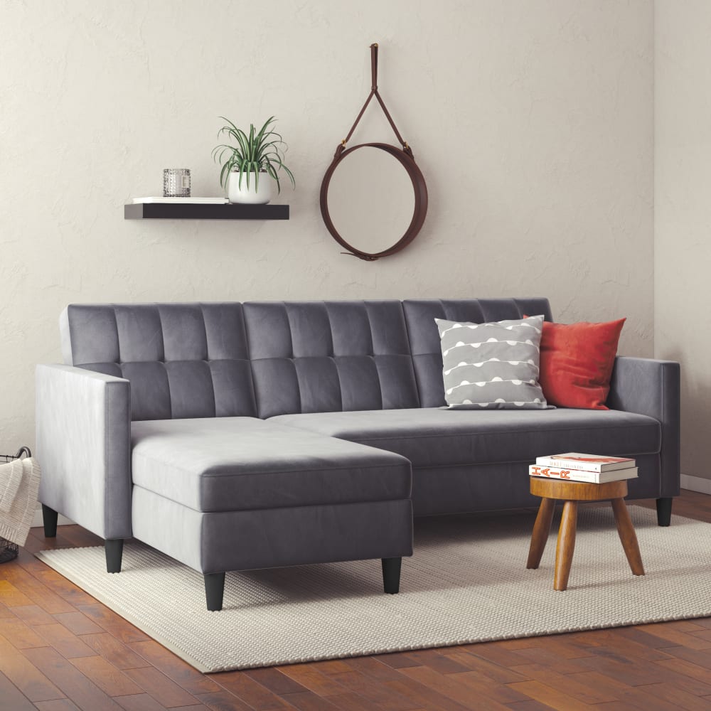 Schlafsofa 3-Sitzer mit Stauraum aus Samt, Anthrazit von Dorel Home