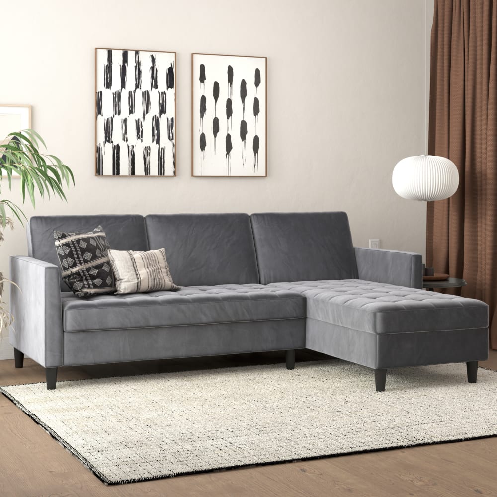 Schlafsofa 3-Sitzer mit Stauraum aus Samt, Anthrazit von Dorel Home