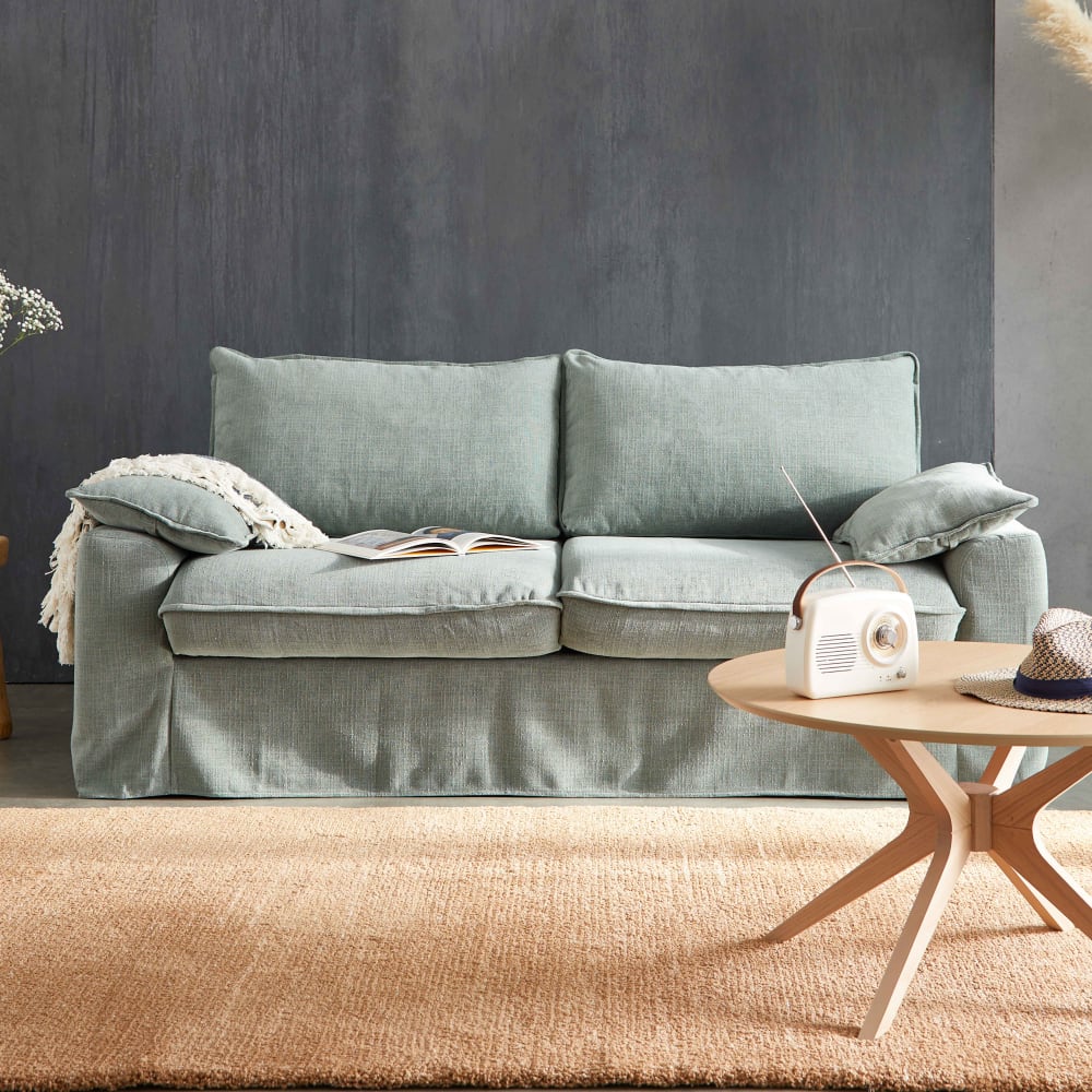 Das Sofa JAROD kann in ein Bett verwandelt werden, um Ihren Komfort zu maximieren, sei es in der Sofa- oder Bettposition. Der Lattenrost aus Stahl, der mit Holzlatten ausgestattet ist, hält dem Zahn der Zeit sowie den wiederholten Bewegungen jedes Schlafenden stand. Seine Rahmen ist aus massivem Holz gebaut: Kiefer und Buche. Die Rückenpolster, gepolstert mit Polyesterfasern und Polyetherschaumflocken, garantieren Ihnen eine optimale Rückenlage. Die Sitzkissen sind aus Polyetherschaum und Polyesterwatte gefertigt. Merkmale: Maße: Sofa: L. 205 x T. 97 x H. 88 cm – Sofa in geöffneter Position: L. 205 x T. 227 x H. 88 cm – 2 Rückenkissen: 86 x 50 cm – 2 Zusatzkissen: 55 x 36 cm – Matratze: 140 x 188 x 12 cmVerkleidungen: Rahmen aus massiver Buche und Kiefer (Herkunft Polen) & Faserplatten Stoffbezug (95 % Polyester und 5 % Baumwolle) Füße aus MassivbuchenholzOberflächen: Jersey-Masche aus 16 kg/m³ PolyetherschaumKomfort & Polsterung: 2 Sitzkissen aus Polyether (Dichte: 28 kg/m³) und Polyesterwatte (Dichte: 240g/m²) 2 Rückenkissen aus Polyesterfasern (65 %) und Polyetherschaumflocken (35 %)Konvertierbarkeit: Ausklappbarer Lattenrost aus Stahl Lattenrost aus 12 cm Multiplexhalterung und elastischen GurteLieferinformationen: Bevor Sie Ihre Bestellung aufgeben, sollten Sie überprüfen, ob das Paket unter Berücksichtigung der Maße der Zugangstüren (Öffnung von mindestens 75 cm) in Ihr Haus geliefert werden kann. Überprüfen Sie für eine Lieferung nach oben auch die Maße des Aufzugs, des Flurs und des Treppenhauses in Bezug auf die Maße des Produkts, das Sie kaufen möchten.