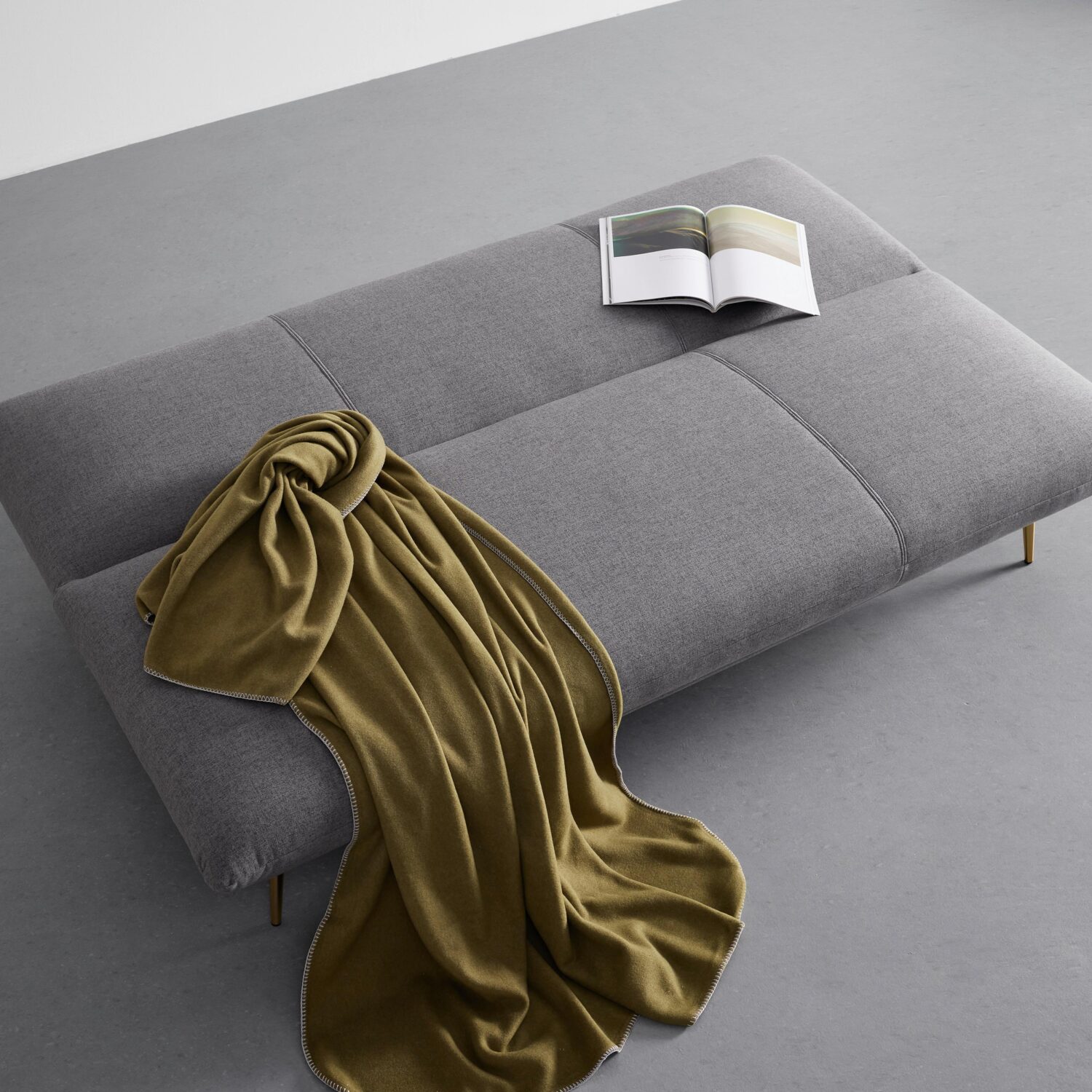 Dieser Artikel ist NUR ONLINE erhältlich! Dieses Schlafsofa in Grau wartet mit einer reduzierten Optik im Retro-Stil auf und ist ganz sicher ein toller Blickfang für Ihr Zuhause. Das ca. 186 x 82 x 85 cm (B x H x T) große Schlafsofa mit einem dezenten Webstoffbezug kann mit einem Innenleben aus Wellenunterfederung und Schaumstoffpolsterung punkten. Konische Metallfüße in Goldfarbe unterstreichen das trendige Erscheinungsbild des bis max. 360 kg belastbaren Sofas. Mittels weniger Handgriffe können Sie das Schlafsofa in ein bequemes Bett mit einer Liegefläche von ca. 186 x 113 cm (B x L) verwandeln. HINWEIS Dieser Artikel wird in unseren Filialen nicht ausgestellt, ist dort jedoch einfach und bequem bestellbar und wird direkt zu Ihnen nach Hause geliefert. Bitte beachten Sie, dass die abgebildete Dekoration im Lieferumfang nicht enthalten ist.