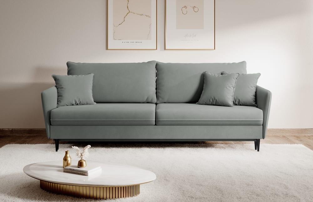Volio ist die beste Lösung für ein modernes Wohnzimmer. Das Sofa besticht vor allem mit seinem minimalistischen Design. Der angesagte, leicht schimmernde Veloursbezug mit angenehmer Haptik fügt sich in verschiedene Raumgestaltungskonzepte elegant ein. Der Bezugsstoff zeichnet sich durch eine hohe Abriebfestigkeit und Pillingbeständigkeit aus. Er verfügt über eine hydrophobe Schicht, die die Möbel vor dem schnellen Absorbieren verschütteter Flüssigkeiten schützt. Die schlanken, konischen Metallbeine in Schwarz schaffen einen optischen Kontrast und lassen das großzügige Modell leichter erscheinen. Die schmalen Armlehnen komplettieren den zurückhaltenden Look. Für Ihre individuellen Bedürfnisse kann das Sofa Volio dank seines echt bezogenen Rückens auch mitten im Raum inszeniert werden.