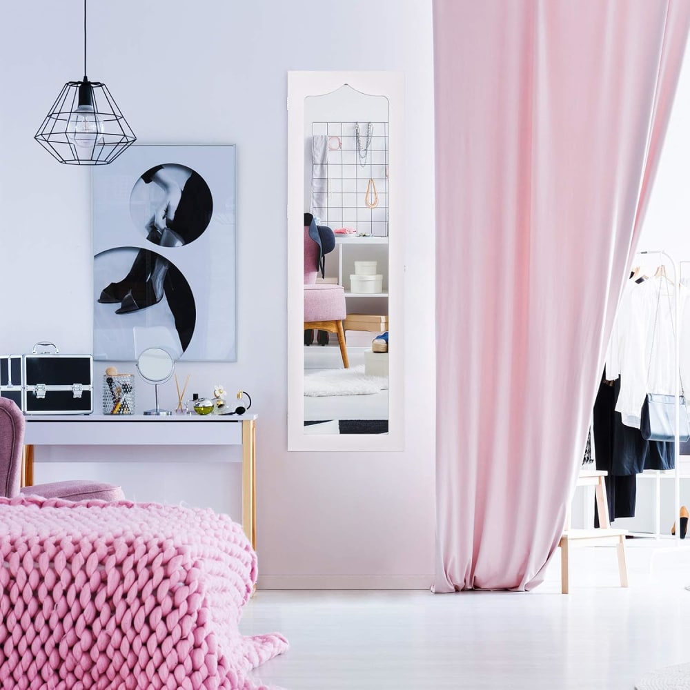 2 Montagemethoden Verfügbar: Mit Haken, Bohrern und dem gelieferten Schraubenpaket können Sie frei wählen, ob Sie den Schmuckschrank an der Tür oder an der Wand montieren möchten. Beide Montagemöglichkeiten sind kinderleicht und sehr platzsparend.