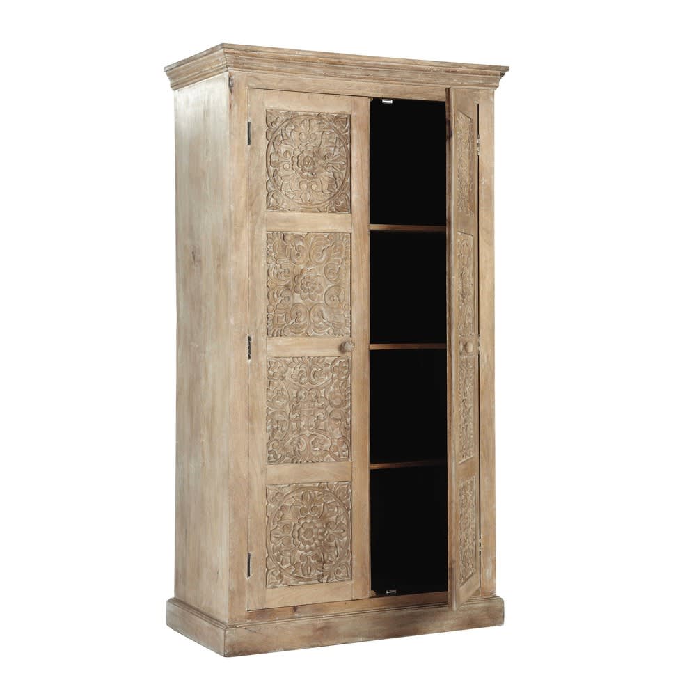 Dieser Schrank aus massivem Mangoholz mit handgeschnitzten Blumenmotiven wurde in Handarbeit gefertigt. Dieser Schrank aus leicht geweißtem Holz verfügt über 3 feste Innenregale. Ganz besonders dekorativ: Jedes Stück ist ein Unikat. Unser Tipp: Verleihen Sie Ihrer Kleidung einen angenehmen Duft, indem Sie ein paar Duftsäckchen im Schrank aufhängen.