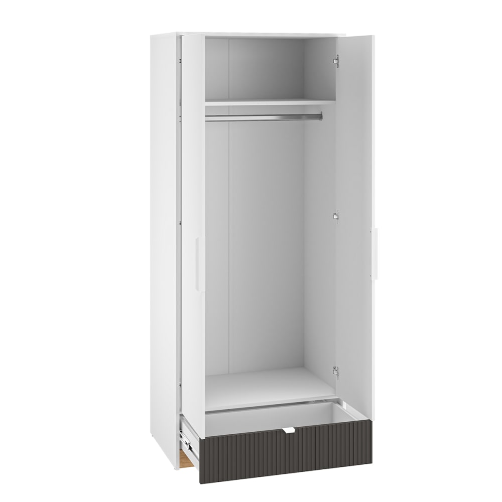 Schrank 2 Türen 1 Schublade Ronan WeißKollektion :: Ronan Europäische Herstellung Material: MDF-FrontplatteMelaminbeschichteter KorpusGute Kratzfestigkeit, Feuchtigkeits- und Temperaturbeständigkeit Farben: Weiß, Holz in Eichenoptik Castello und Graphit matt Eigenschaften: 2 Türen2 Einlegeböden1 Kleiderstange1 Schublade mit verstärktem BodenVollauszugTüren mit geräuschlosem Schließsystem Gewicht : 64,5 kg Maße: 82 x 53 x 196 cm Verpackung : Produkt wird geliefert, muss zusammengebaut werden, inkl. Anleitung. Garantie: 24 Monate Gesamtanzahl der Kartons : 2 Gewicht und Abmessungen der Kartons: 22,5 kg103 x 59,5 x 10 cm / 206 x 59 x 8 cm Gesetzlicher Vertreter: NAPKINS, 30-34 avenue Henri Matisse, 06200 Nizza, FRANKREICH