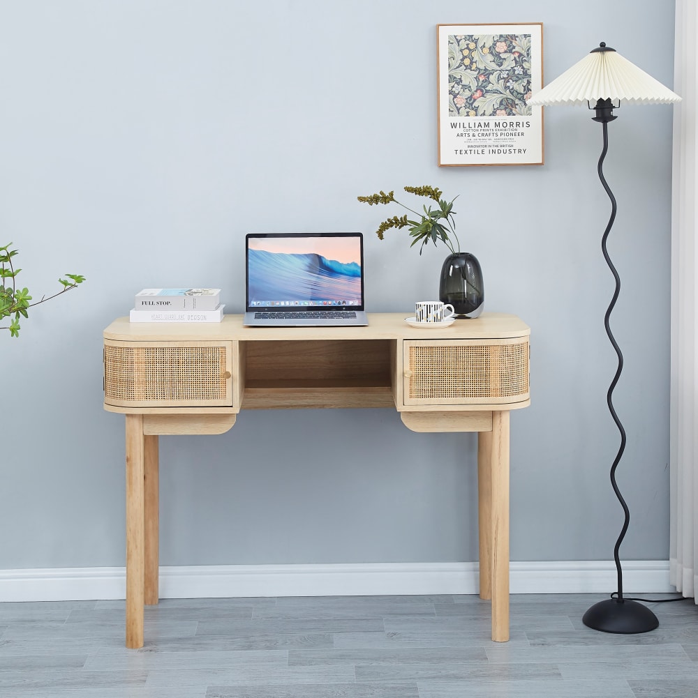 Schreibtisch 2 Türen aus Massivholz und Rattan von Nordlys