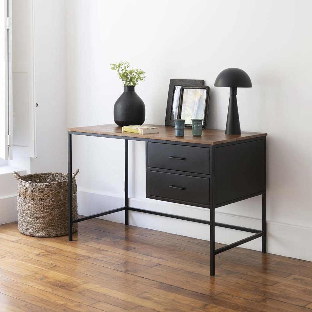 Schreibtisch aus Metall und Mangoholz 2 Schubladen von Decoclico