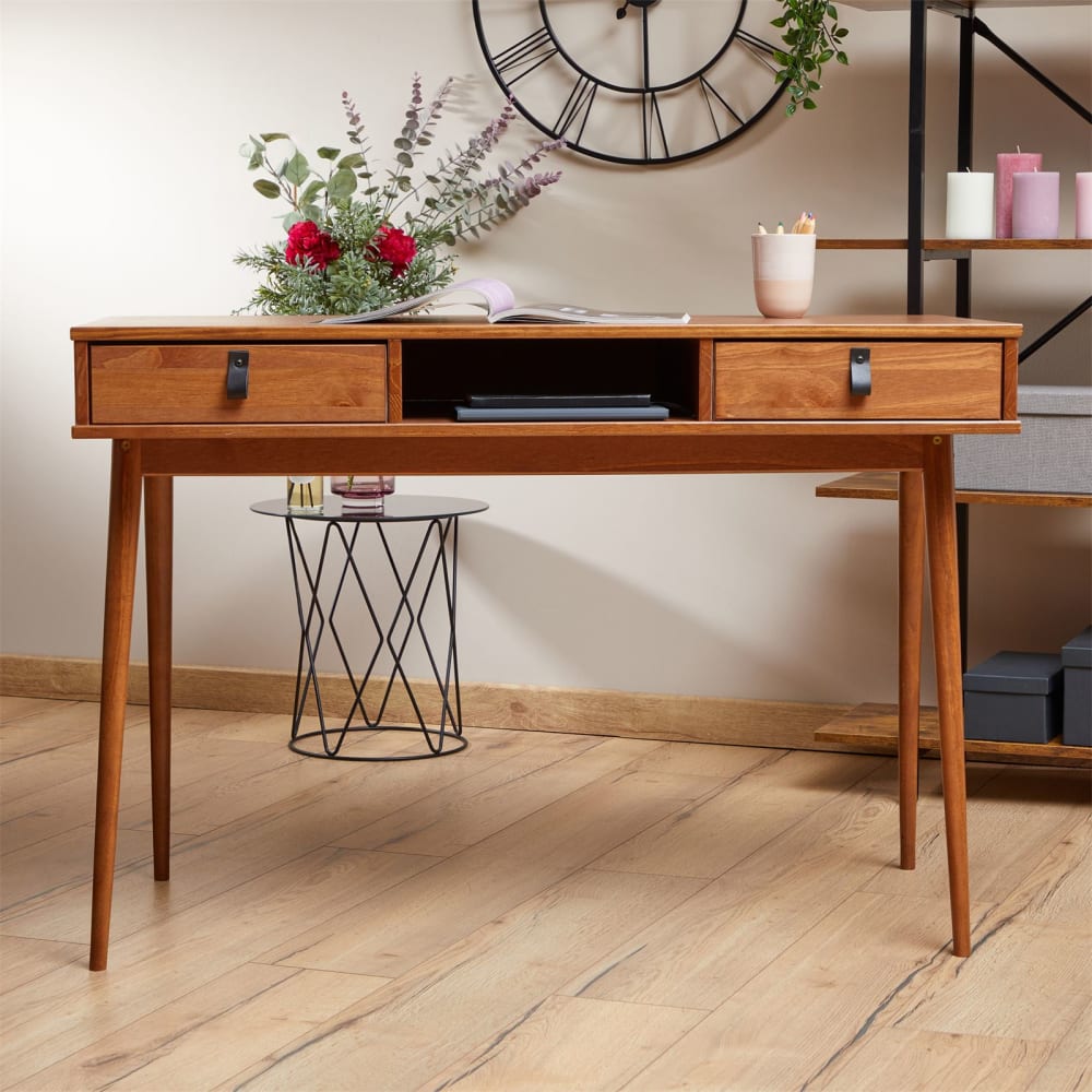 Schreibtisch mit 2 Schubladen aus Kiefer, Kastanie von IDIMEX