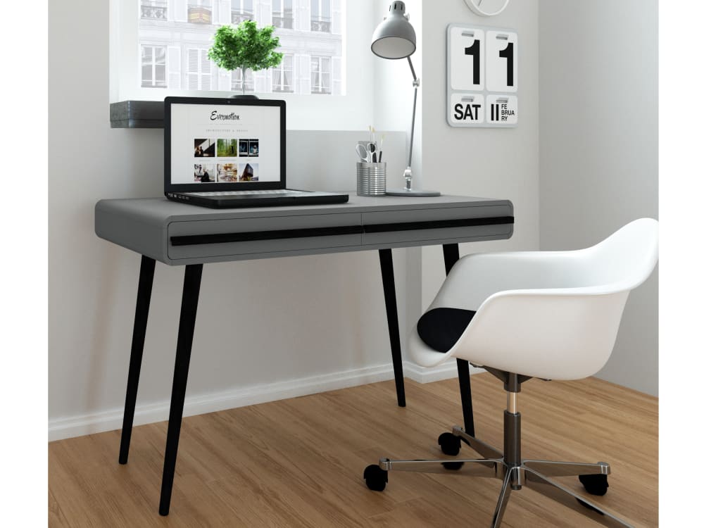 Schreibtisch mit 2 Schubladen in Spanplatte Grau und Schwarz von Loft24