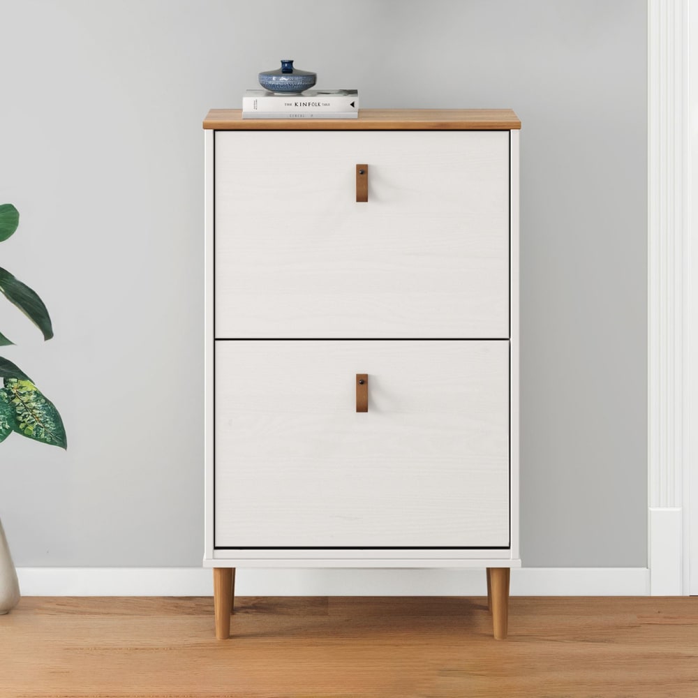 Schuhkipper mit 2 Klappen und Ledergriffen, weiß/Eiche von IDIMEX