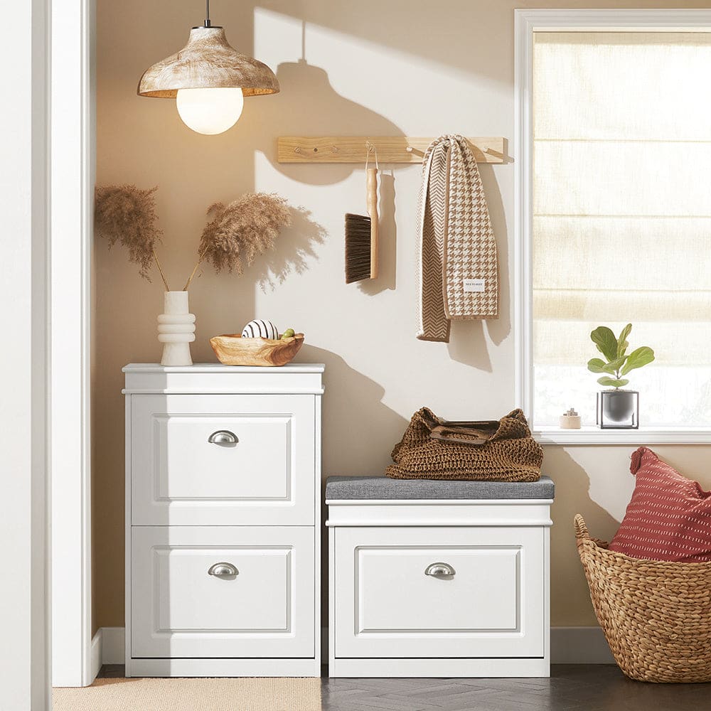 Schuhkipper mit Sitzkissen und Klappe MDF Weiß von SoBuy