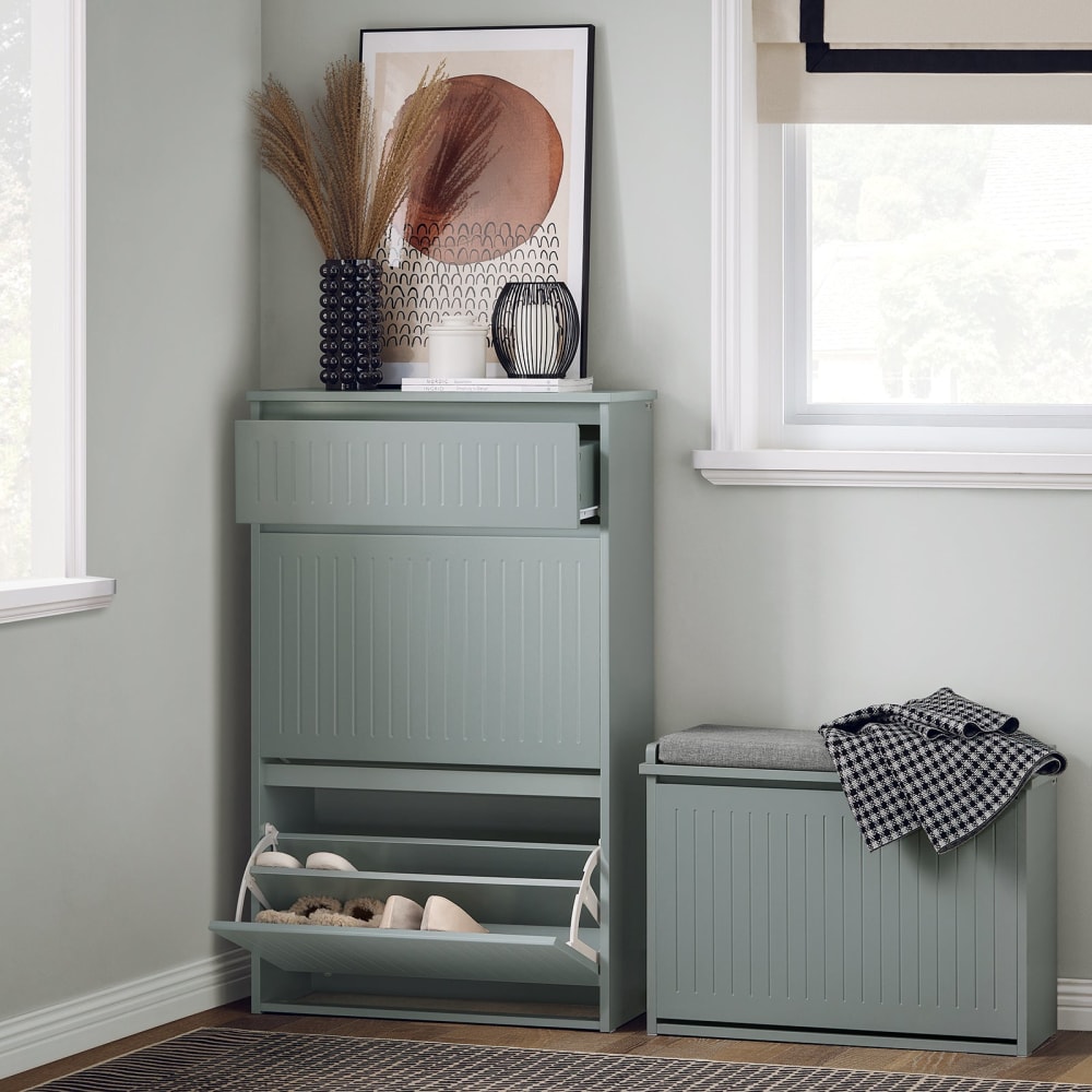 Schuhkipper Schuhablage Schuhschrank aus MDF(E1) Hellgrau von SoBuy