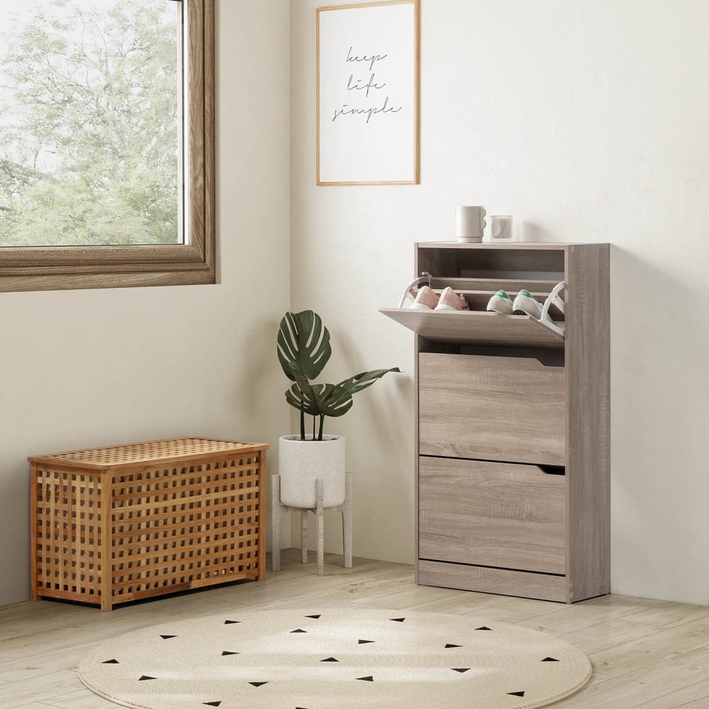 · Dieses Schuhregal mit Flügeltüren ist ideal für jeden Raum im Haus, insbesondere für den Flur, das Ankleidezimmer oder das Schlafzimmer. Ein attraktives Design, das problemlos zu jeder Art von Dekorationsstil passt: nordisch, zeitgenössisch, romantisch, mediterran, Boho … Auch für den rustikalen Stil geeignet! Sorgen Sie für einen optimalen Aufbewahrungsort für Ihre Schuhe und legen Sie Wert auf Ordnung zu Hause. Alle Ihre Paar Schuhe, Turnschuhe, Absätze oder Handtaschen können in diesen Schuhregalen gut organisiert werden, wo sie durch die Öffnungslöcher atmen können.