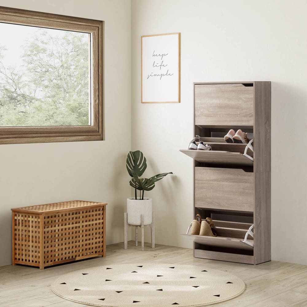 · Diesen Schuhregalen fehlen Griffe, stattdessen haben die Kipptüren originale Löcher, in die Sie Ihre Hand stecken und die Tür öffnen können.