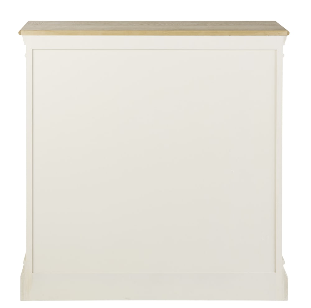 Die Schuhkommode Léontine verströmt ein ländliches Ambiente in Ihrem Eingangsbereich.Dieses cremefarben patinierte Aufbewahrungsmöbel aus Holz wird sich schnell als unentbehrlich erweisen.Ein Möbel im authentischen Stil mit zwei großen Staufächern und einer schönen Platte in natürlicher Optik.Diese einladende und funktionelle Schuhkommode passt hervorragend zur Kommode und zum Buffet derselben Kollektion.