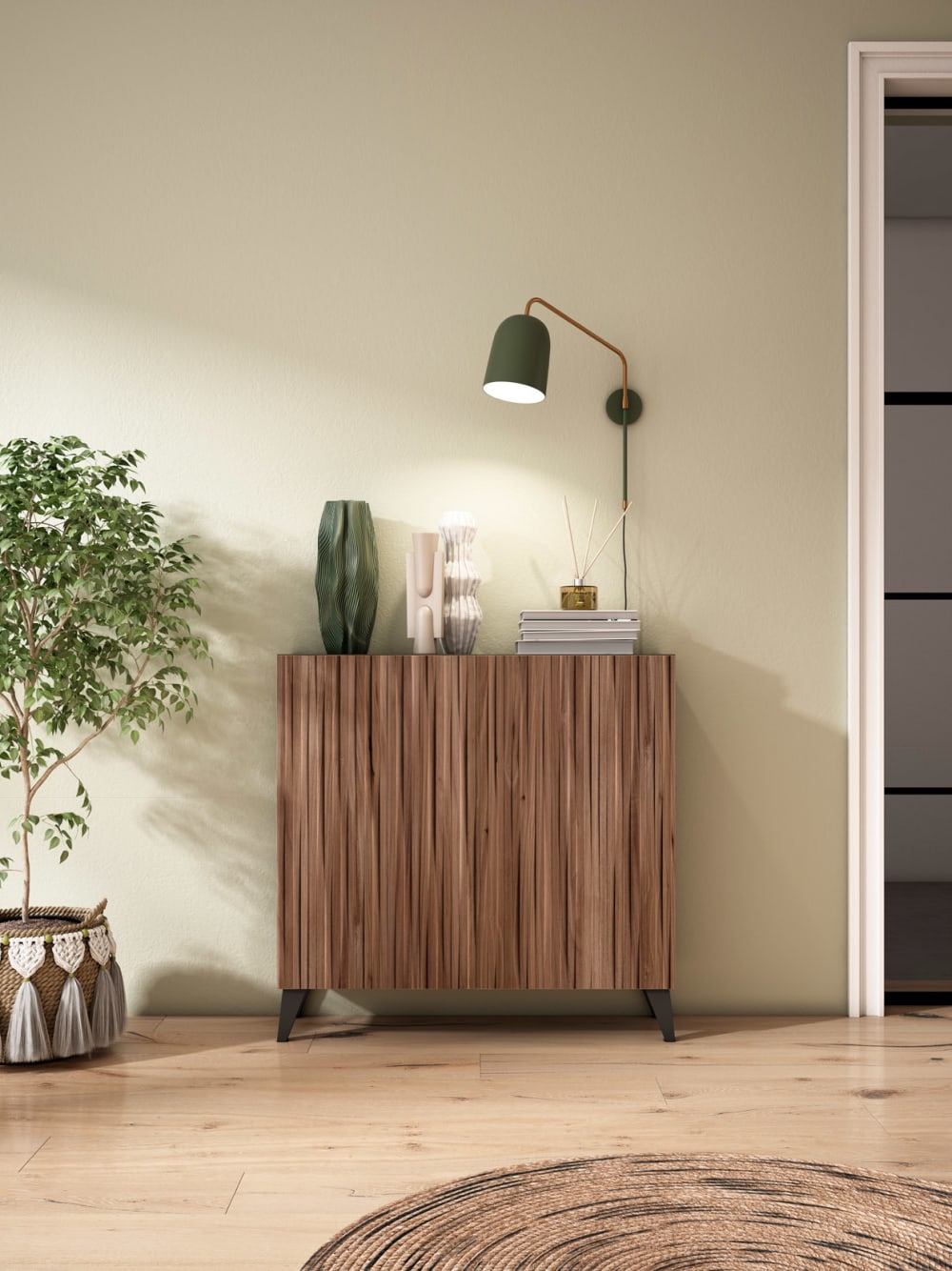 Das ideale Gleichgewicht zwischen skandinavischem Stil, alltäglicher Funktionalität und hochwertigen Materialien. Dieses Möbelstück mit klaren Linien und zeitlosem Design, mit seinen flachen Türen mit hochwertigem Druck und Latten-Effekt und eleganten Beinen aus massiver Buche, verleiht jedem Raum eine warme und moderne Note. Ob als Schuhschrank oder als Beistellmöbel im Eingangsbereich, Flur oder Wohnzimmer es ist die perfekte Lösung, um Ordnung zu halten, ohne auf Stil zu verzichten. Eine sichere Wahl für alle, die praktische, langlebige und stilvolle Möbel suchen!Eigenschaften :Materialien: Struktur und Türen aus Melamin, Beine aus lackiertem massivem Buchenholz.Zertifizierung: FSC, PEFC.Herstellung: Spanien.TÜREN OHNE RELIEF MIT HYPERREALISTISCHEM LATTE-EFFEKTDRUCK AUSSEN UND INNEN.3 vielseitige Einlegeböden (geneigt oder horizontal einsetzbar).Kapazität: 1416 Paar.Rückwand zum Verschließen des Möbels und zum Schutz der Wand vor Flecken.Die aus vernickeltem Stahl gefertigten Scharniere haben einen Soft-Close-Mechanismus, um Türschläge zu vermeiden.Hohes Modell: Narvik 514.Möbel zur Selbstmontage mit Montageanleitung in 1 Paket verkauft.Pflegehinweis :Mit einem trockenen oder leicht feuchten Tuch und geeigneten Holzpflegemitteln reinigen (ein zu nasses Tuch kann Schäden verursachen).Allgemeine Abmessungen :Höhe: 87cm.Länge: 90cm.Tiefe: 27cm.Gewicht: 27kg.Spezifische Abmessungen :Höhe jedes Fachs: 17cm.Innenlänge: 87cm.Innentiefe: 23cm.Tiefe der Einlegeböden: 23cm (horizontal) und 31cm (geneigt).Beinhöhe: 12cm.