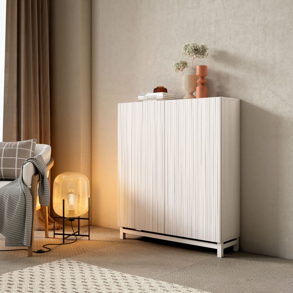 Schuhschrank Melamin Weiß Türen Lattenoptik weißen 112x90x27 cm von Herdasa