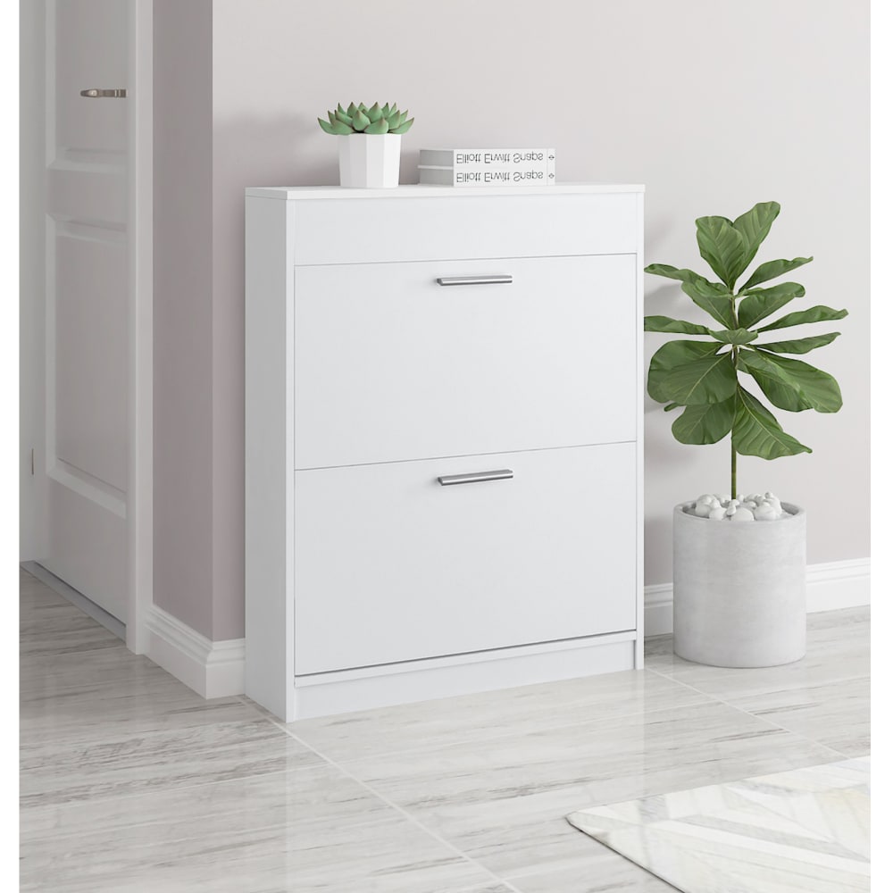 Schuhschrank mit 2 Kipptüren in Holzoptik, weiß von Loft24