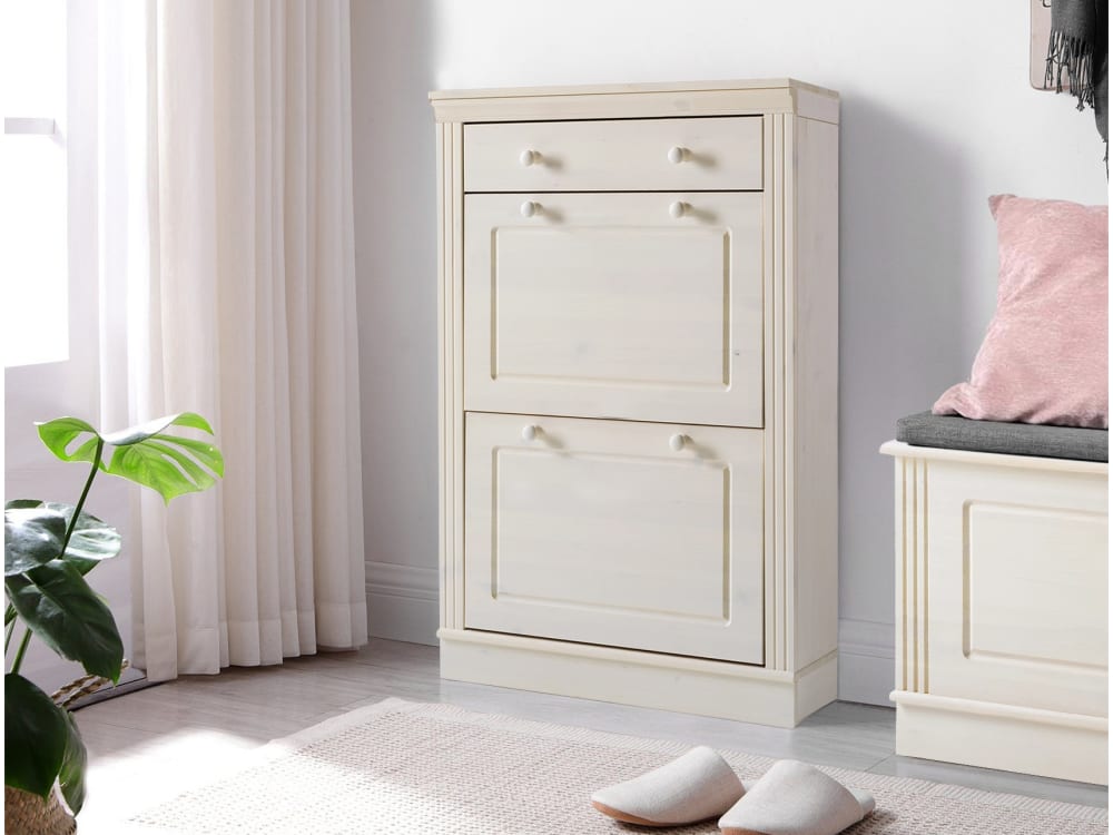 Schuhschrank mit 2 Kipptüren und 1 Schublade aus Kiefer, weiß von Loft24
