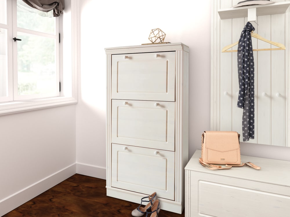 Schuhschrank mit 3 Kipptüren aus Kiefer, weiß von Loft24