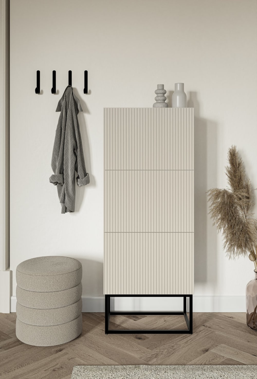 Schuhschrank mit 3 Klappen, Greige mit schwarzem Metallgestell, 50 cm von Selsey
