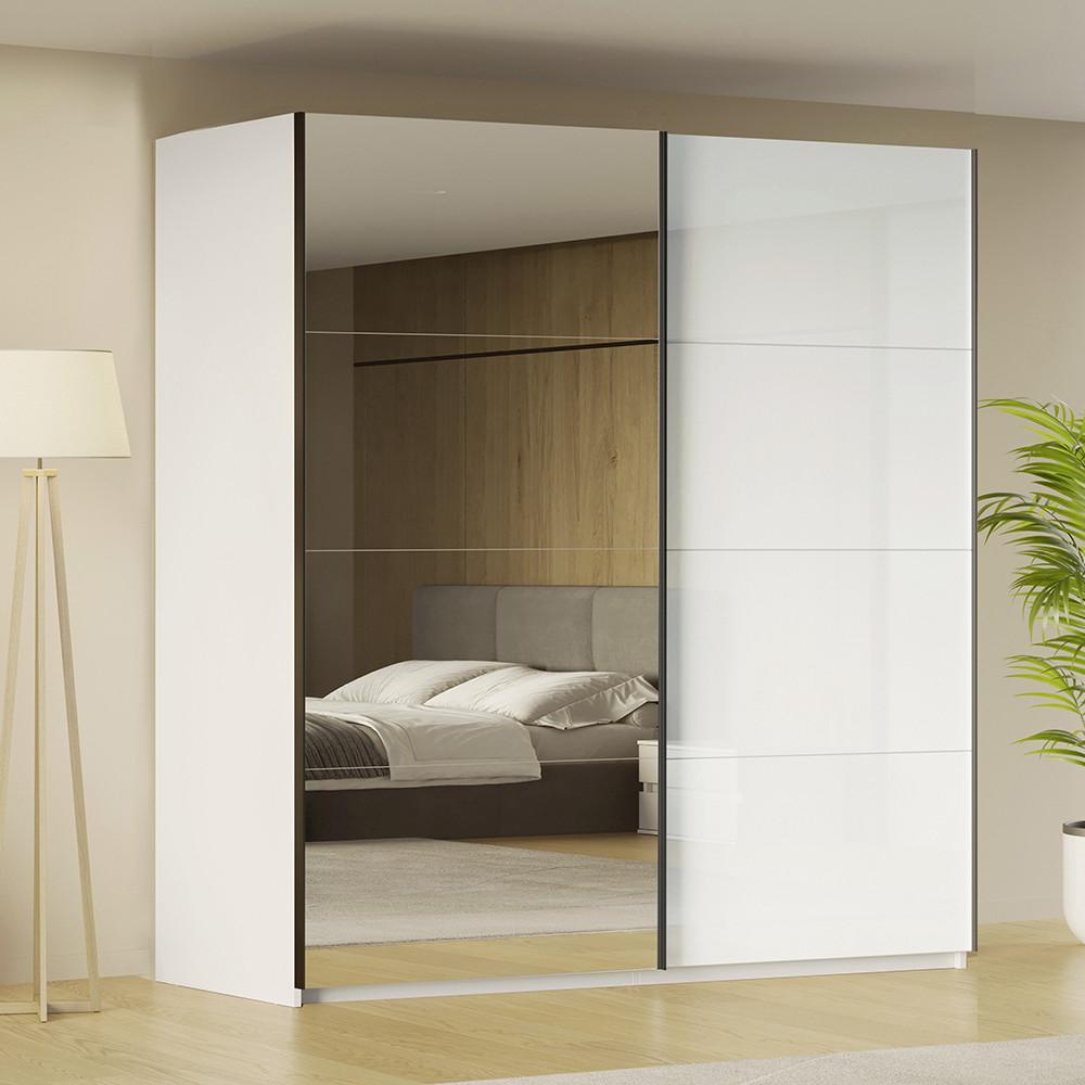 Schwebetürenschrank Family Weiß Hochglanz von Mömax Schwebetürenschrank Family Weiß Hochglanz Farbe Weiß Material Metall