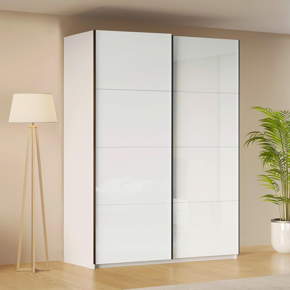 Schwebetürenschrank Family Weiß Hochglanz von Mömax Schwebetürenschrank Family Weiß Hochglanz Farbe Weiß Material Metall