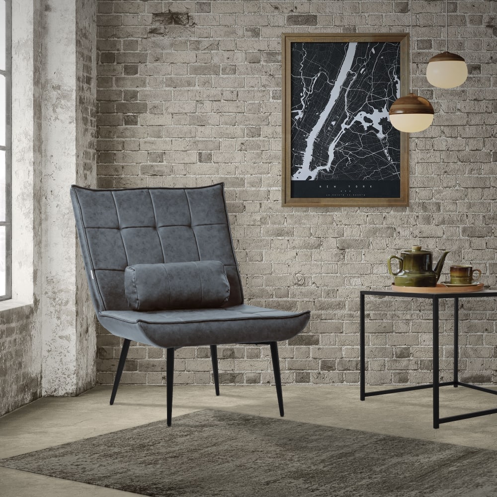 Sessel Anthrazit aus Kunstleder-PU mit Metallbeinen 79 x 100 x 97 cm von ML-Design