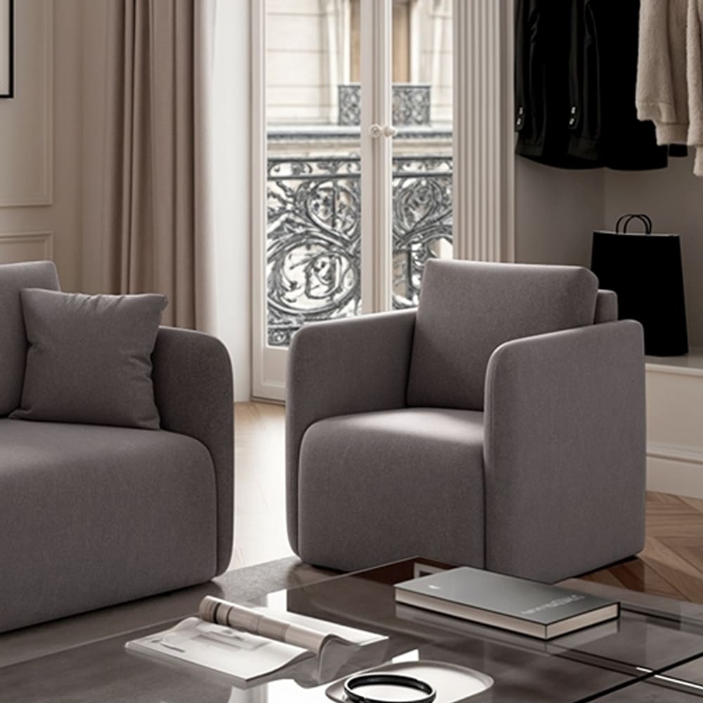 Entdecken Sie französische Eleganz mit der Rodier Chaum Kollektion, die minimalistisches Design auf raffinierte Funktionalität trifft. Dieser kompakte Sessel zeichnet sich durch niedrige Beine und schlanke, elegante Seitenwände aus und schafft so eine luftige Silhouette, die perfekt in jedes moderne Interieur passt. Er bietet dauerhaften Komfort und vereint Funktionalität und Eleganz. Jedes Stück der Chaum Kollektion ist aus luxuriösen, samtig anmutenden Stoffen oder einem markanten Fischgrätmuster gefertigt und sorgt für ein ebenso edles wie langlebiges Haptikerlebnis.
