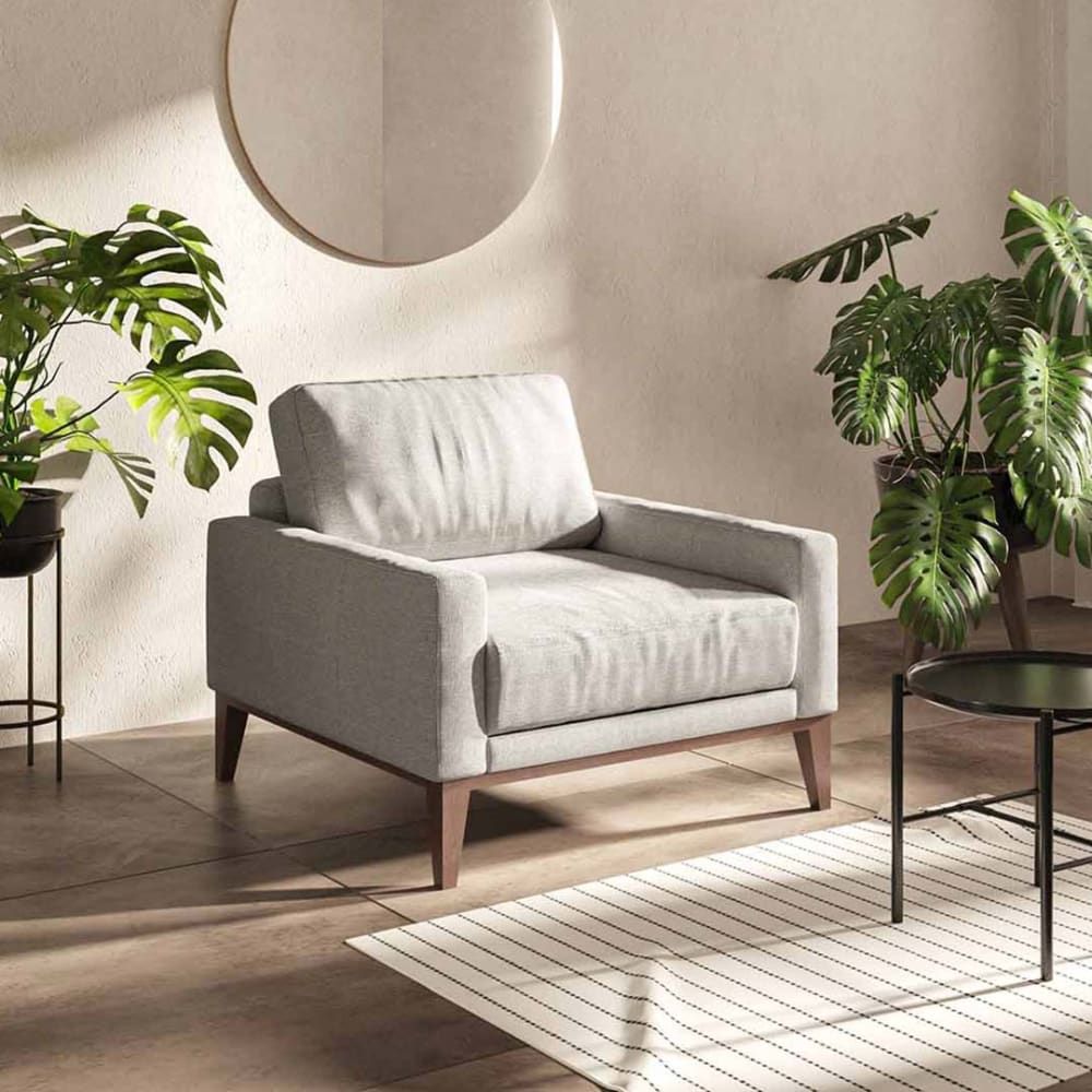 In unserer schnelllebigen und hektischen Welt ist Entspannung ein wesentlicher Aspekt unseres Lebens. Um Ihr Zuhause zu einer Oase der Ruhe zu machen, ist der Sessel MUSSO mit seinen harmonischen Linien und seiner klaren Ästhetik unverzichtbar. Es bietet Ihnen angenehme Momente der Entspannung, wenn Sie abends Ihr Lieblingsbuch lesen oder einen Film ansehen. Es ist auch ein bequemer Sitzplatz für Treffen mit Ihrer Familie oder Freunden. Der Sessel MUSSO ist aus hochwertigem Polsterstoff gefertigt, was ihm eine außergewöhnliche Ästhetik und Langlebigkeit verleiht. Außerdem werden zwei kleine, bequeme Kissen mitgeliefert, die zu Farbe und Stil passen.