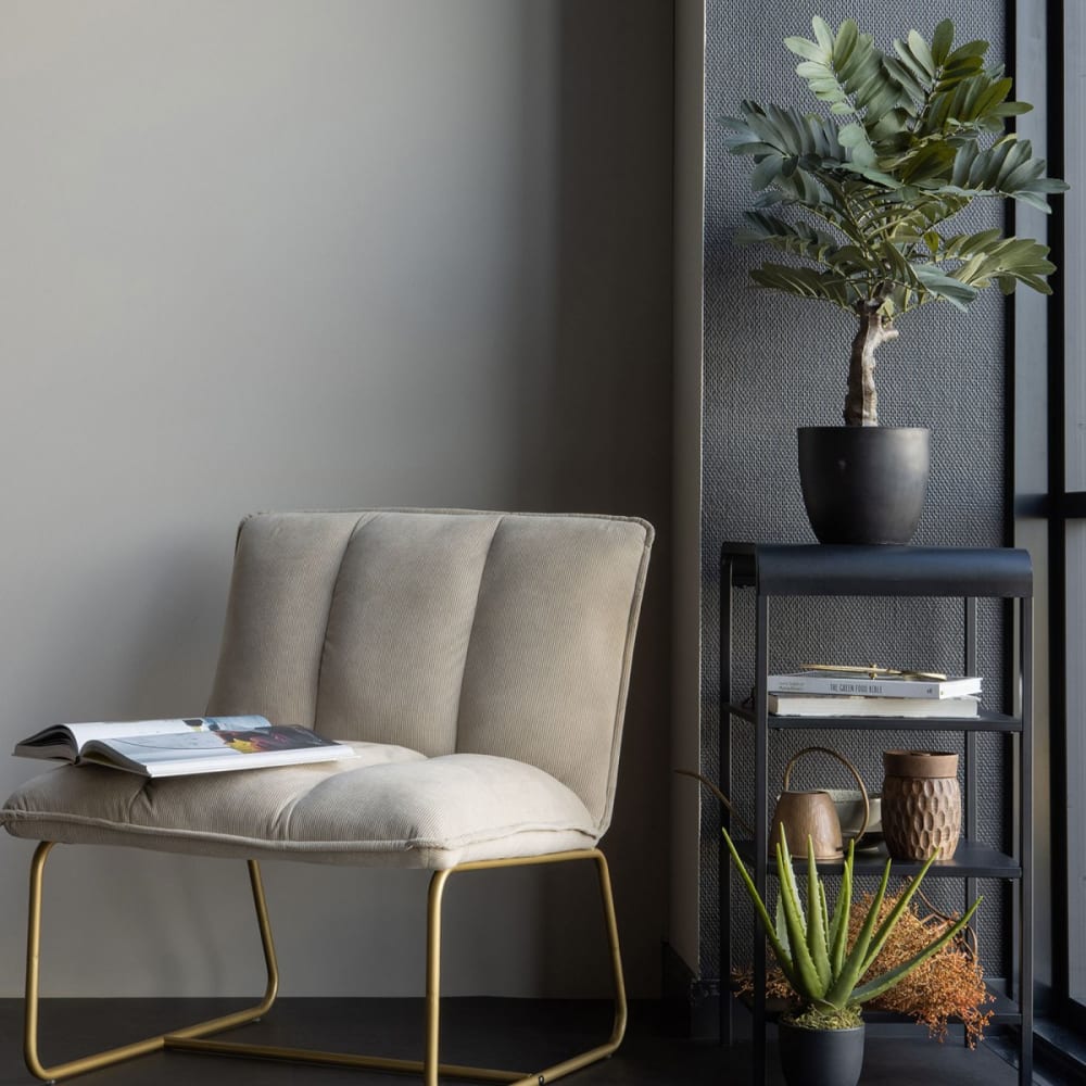 Der von der niederländischen Marke WOOOD entworfene und gestaltete Sessel Ribcord Sable Fie zeichnet sich durch eine ausgefeilte Ästhetik aus, die Modernität und Eleganz perfekt miteinander verbindet. Er steht auf originell geformten Füßen aus Metall und Gold und hat eine Sitzfläche in hellem Beige. Diese neutralen Farben haben den Vorteil, dass sie sich problemlos mit einer Vielzahl von Einrichtungsstilen kombinieren lassen. Mit der Marke WOOOOD entscheiden Sie sich für ein hochwertiges Qualitätsprodukt, das Ihnen optimalen Komfort bietet. .