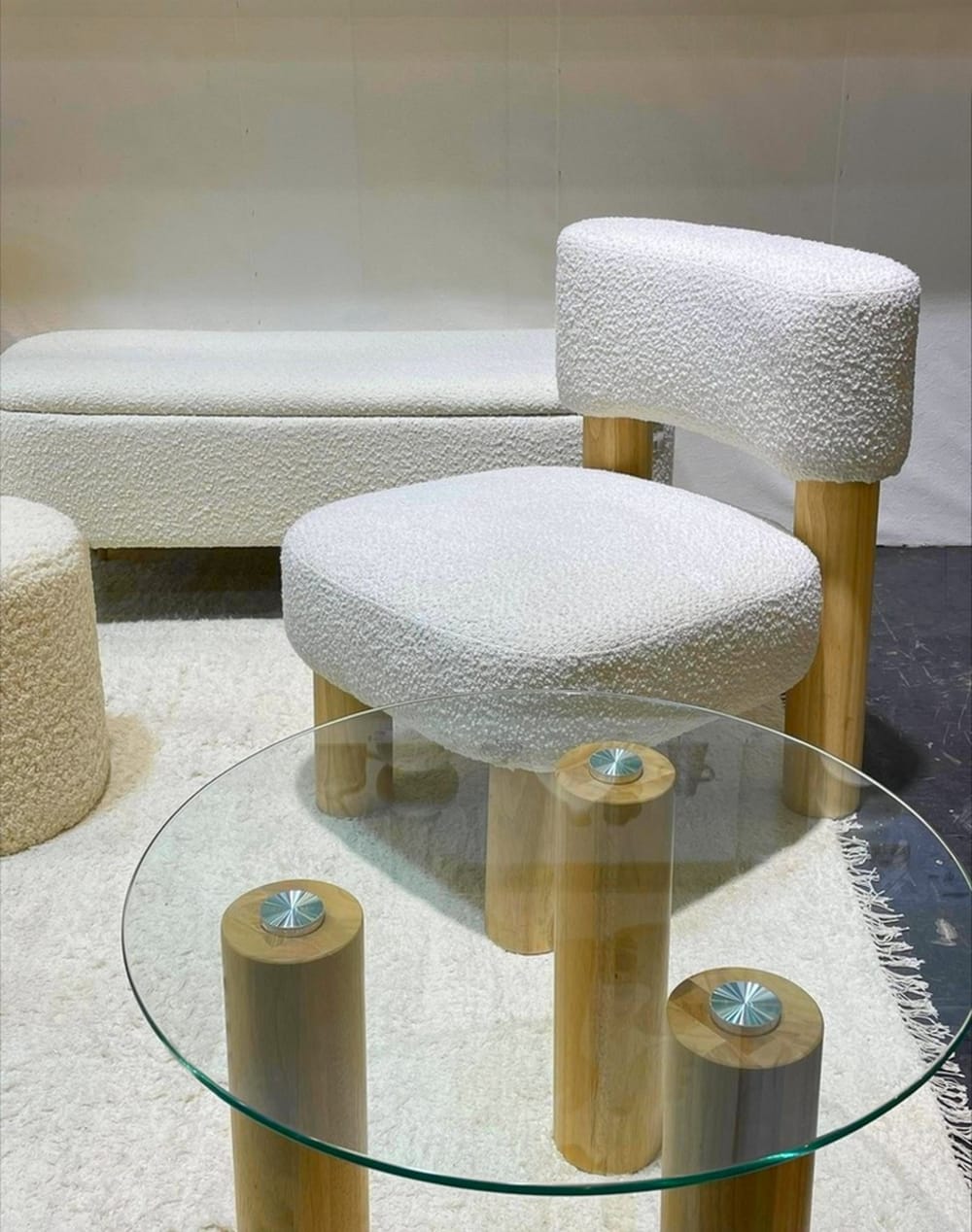 Sessel aus weißem Bouclé-Stoff von Mathi Design