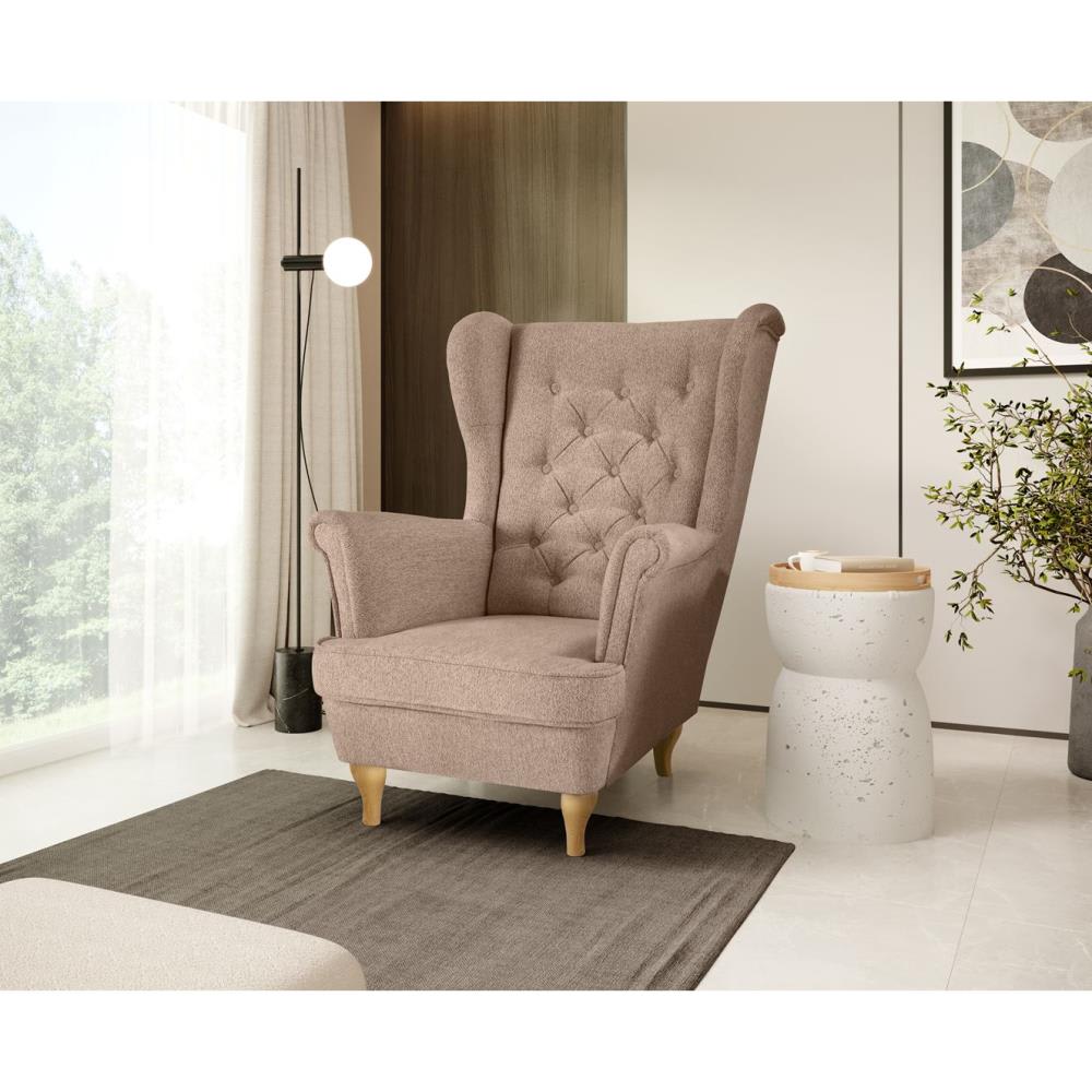 Sessel mit Buche Holzbeinen, hellbraun, Bouclé-Stoff von Beauty Sofa GmbH