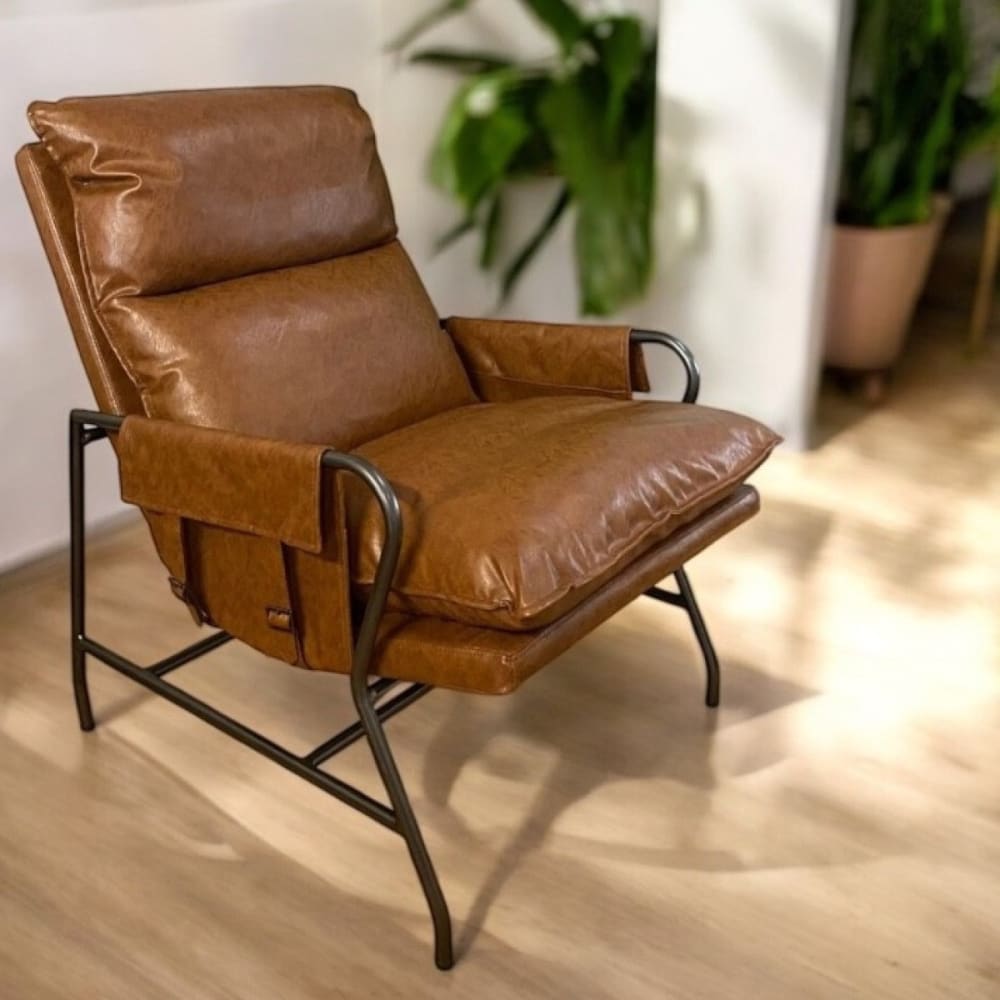 Bequemer Lounge-Sessel aus Kunstleder in Braun 68x94x91cm PVC und Synthetik Braun Mathi Design Sofas und Sessel Sessel, Poufs und Fußbänke Sessel