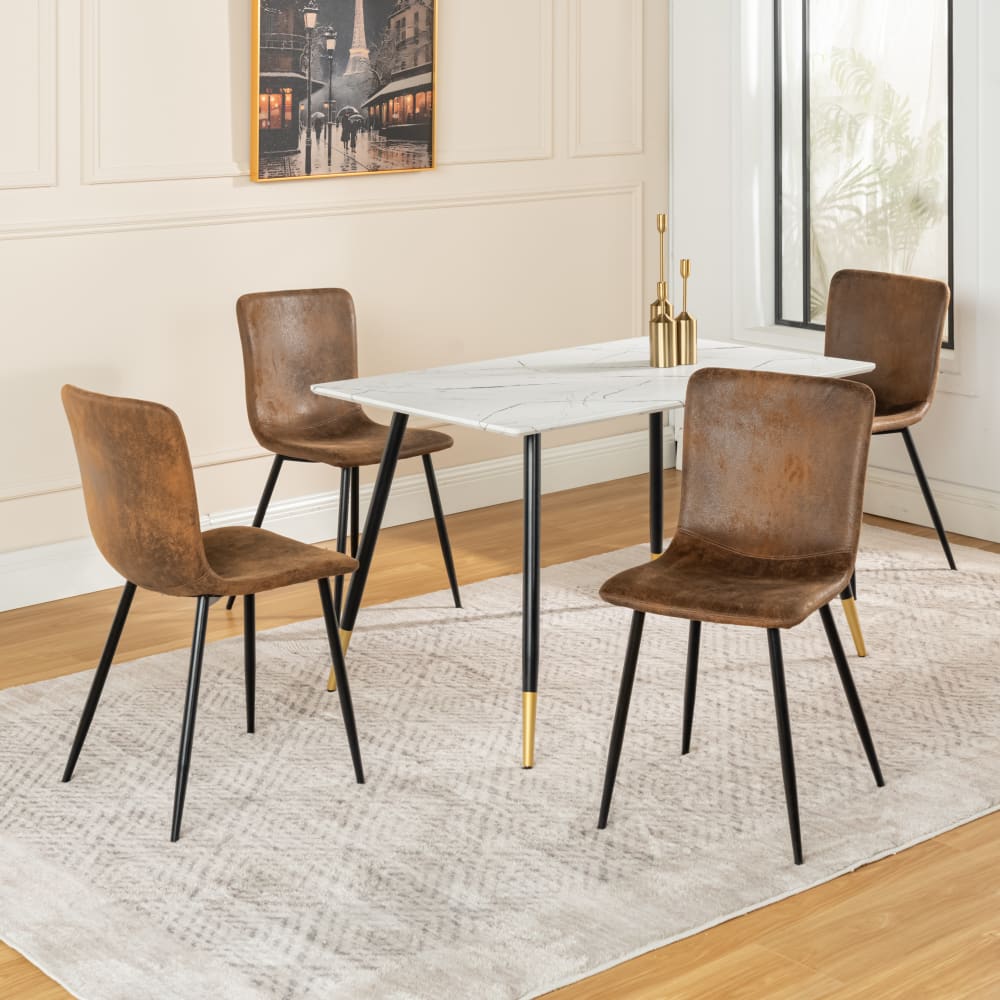 ZEITGENÖSSISCHES DESIGN: Passt perfekt zum aktuellen Trend, vereint Stil und Komfort und ist ideal für die Schaffung eines warmen und gemütlichen Interieurs. Lassen Sie sich von dem weichen und angenehmen Wildlederbezug der modernen Stühle verführen. Ihre braune Farbe passt sich harmonisch allen Einrichtungsstilen an und erhellt Ihren Raum.
