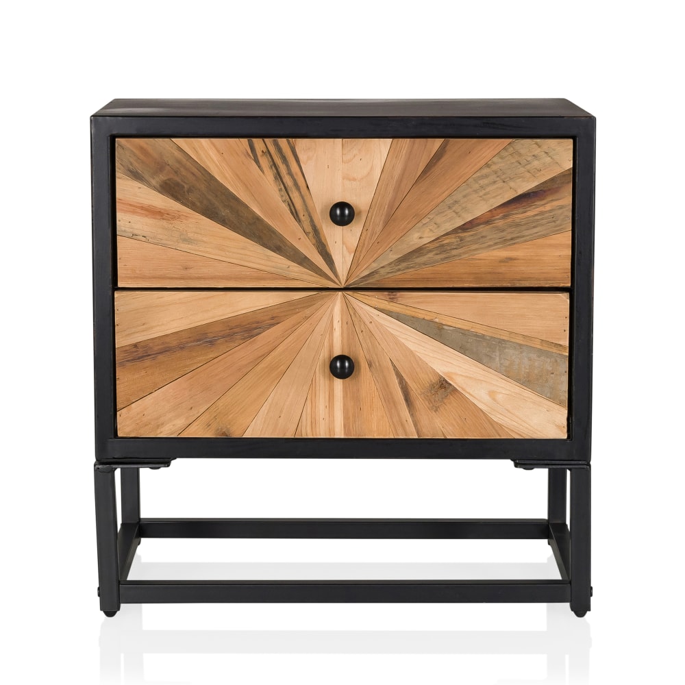 Verleihen Sie Ihrem Raum mit unserem stilvollen SANTJAGO BLACK SUN S Beistelltisch einen Hauch von Charakter und Natürlichkeit. Ausgestattet mit zwei praktischen Schubladen bietet dieser Tisch ausreichend Stauraum für Ihre persönlichen Gegenstände. Das robuste Metallrahmen-Fußgestell sorgt für Stabilität und einen modernen Look, während die Schubladenfronten aus massivem Tannenholz jedem Stück eine einzigartige Note verleihen. Da jeder Artikel ein Einzelstück ist, bringen Sie mit dem SANTJAGO BLACK SUN S ein ganz besonderes Möbelstück in Ihr Zuhause, das sowohl funktional als auch umweltbewusst ist. Ideal für Schlafzimmer oder Wohnzimmer!