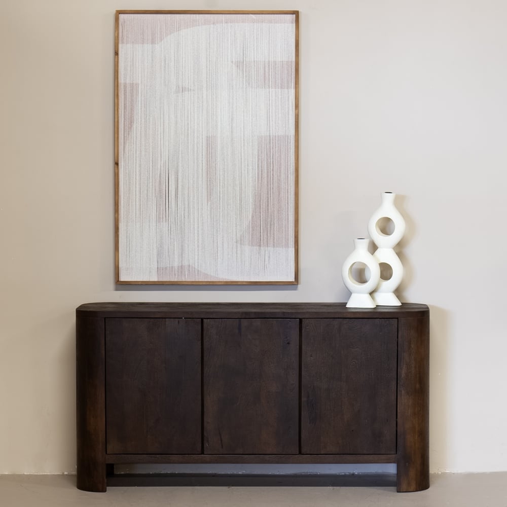 Entdecke das Sideboard Mitchel von Giga Meubel, ein Meisterwerk aus massivem Mangoholz in elegantem Dunkelbraun. Mit seinen großzügigen Maßen von 150x40x76 cm bietet dieses Dressoir nicht nur viel Stauraum, sondern auch einen stilvollen Akzent für dein Zuhause. Die drei Türen mit Push-to-Open-Funktion und die drei Einlegeböden machen es besonders praktisch und vielseitig. Das rustikale Design im Landhausstil verleiht jedem Raum eine warme und einladende Atmosphäre.