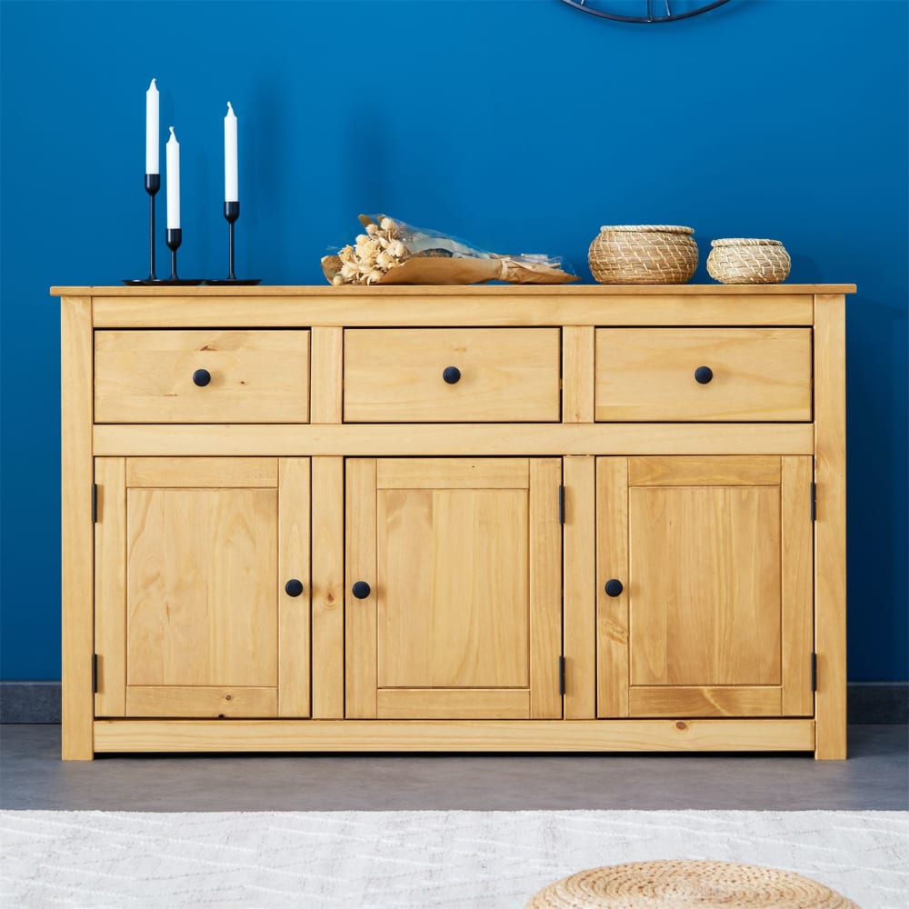 Sideboard mit 3 Türen 3 Schubladen aus Kiefer, gebeizt/gewachst von IDIMEX