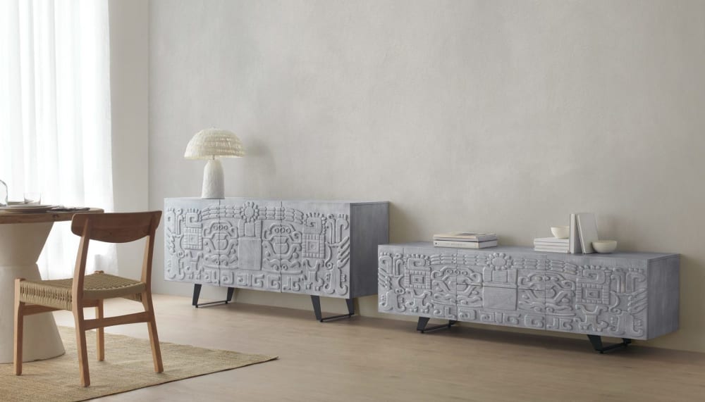 Sideboard mit 3 Türen in Grau aus massivem Mangoholz von GEESE HOME