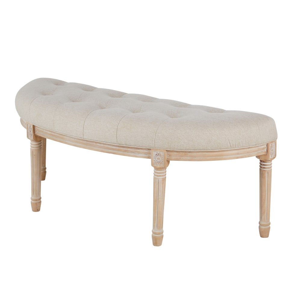2-Sitzer-Bank mit Capitonné-Steppung ecrufarbenem und Kautschukbaum-Holz 125x50x44cm Stoff Weiß Maisons du Monde Sofas und Sessel Sofas Sitzbank und Polsterbank