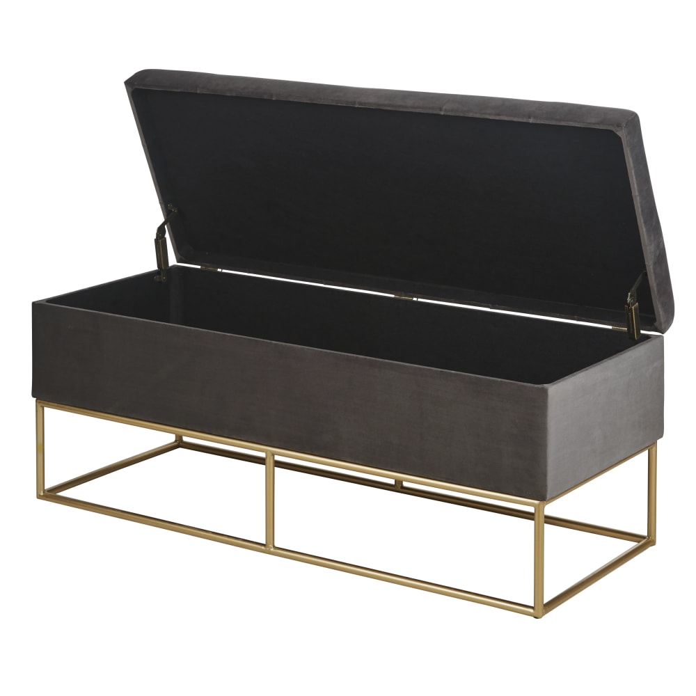 Sitzbank mit Stauraum in Anthrazitgrau 110x47x43cm Polyester Gold Maisons du Monde Sofas und Sessel Sofas Sitzbank und Polsterbank