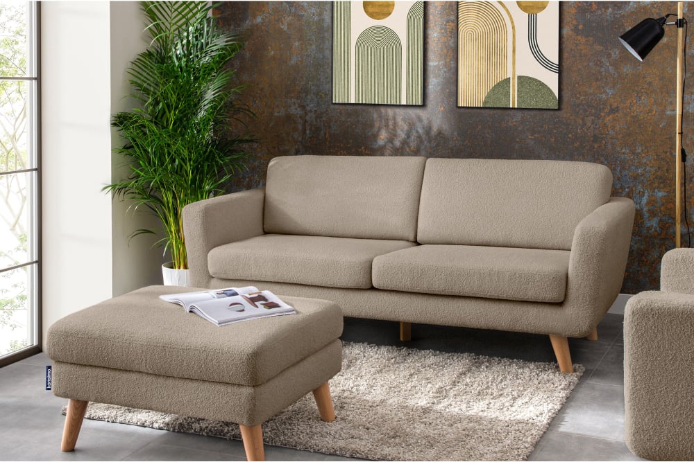 Die skandinavische Kollektion TAGIO ist aus hochwertigen Materialien gefertigt. Die Kollektion besteht aus Sofas in verschiedenen Größen, Sesseln, Ecksofas (rechts und links) und Poufs. Ein zusätzliches Merkmal der Möbel sind die Kissenbezüge, die mit einem ästhetisch verdeckten Reißverschlusstunnel versehen sind. Sie sind mit Velours- oder Bouclé-Oberstoff gepolstert, der sich unglaublich angenehm anfühlt und abrieb- und peelingfest ist. Dank dieser Eigenschaften ist das Sofa leicht sauber zu halten, was für jeden Nutzer ein besonderer Vorteil ist. Darüber hinaus besteht ihr Rahmen aus streng ausgewähltem Holz, dessen Feuchtigkeitsgehalt 12 % nicht überschreitet.